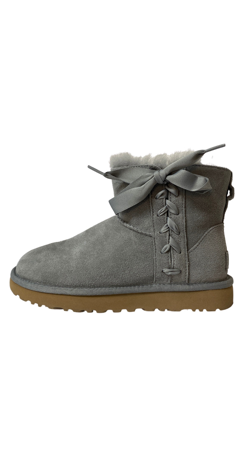 Botas de invierno color Gris con forro interno de lana y tencel, cinta entrecruzada en laterales y suela Café. Talla 6 US ó 37 EU de la marca. Las compras efectuadas de la categoría calzado, no tienen derecho a cambios ni devoluciones.