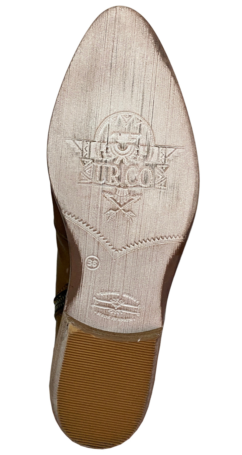 Botines color Café con diseño desgastado y corte asimétrico en tobillo, cierre en laterales, tacón de 3 cm.