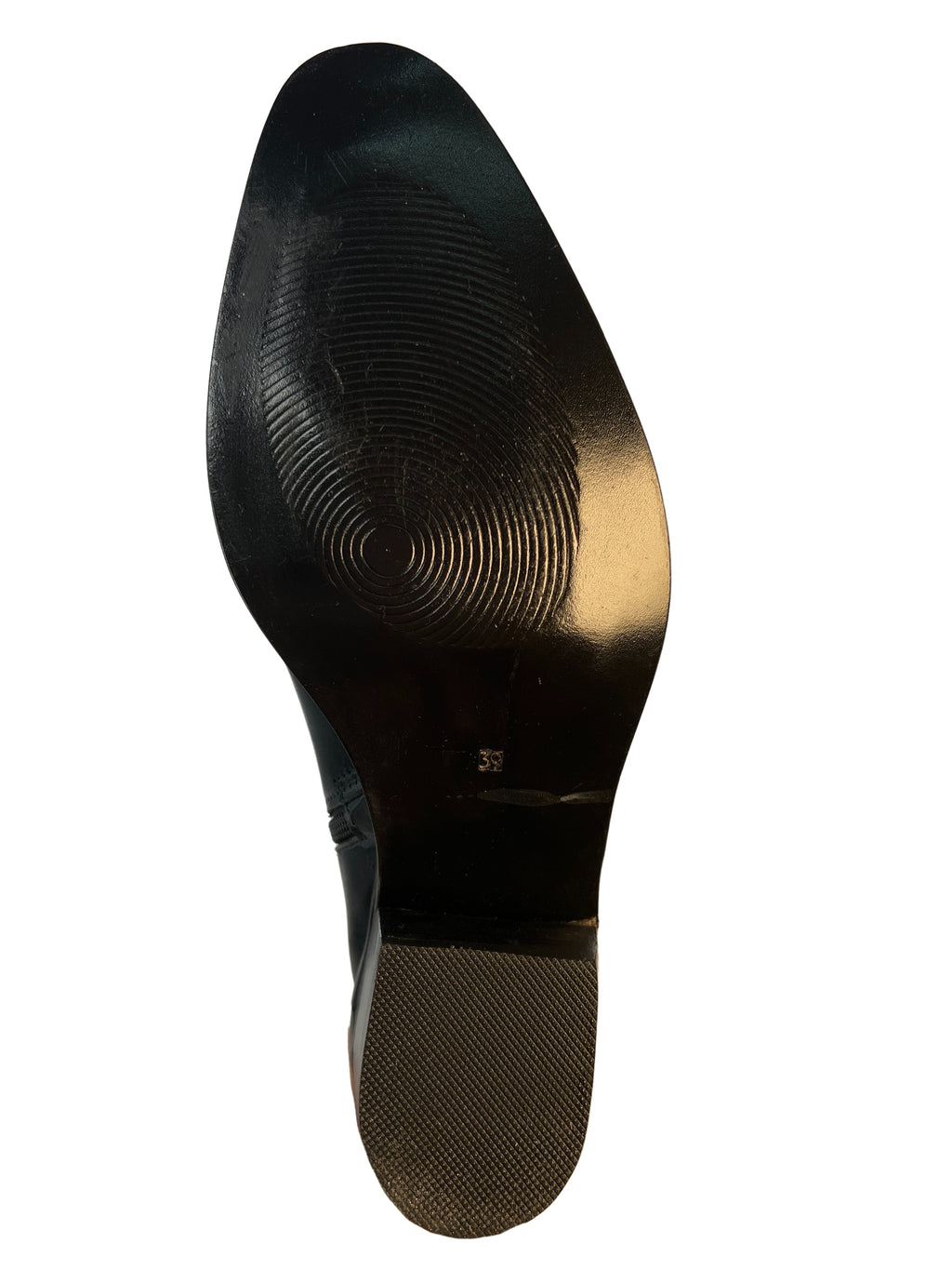 Se siente como cuero. Altura taco: 5 cm. Las compras efectuadas de la categoría calzado, no tienen derecho a cambios ni devoluciones.