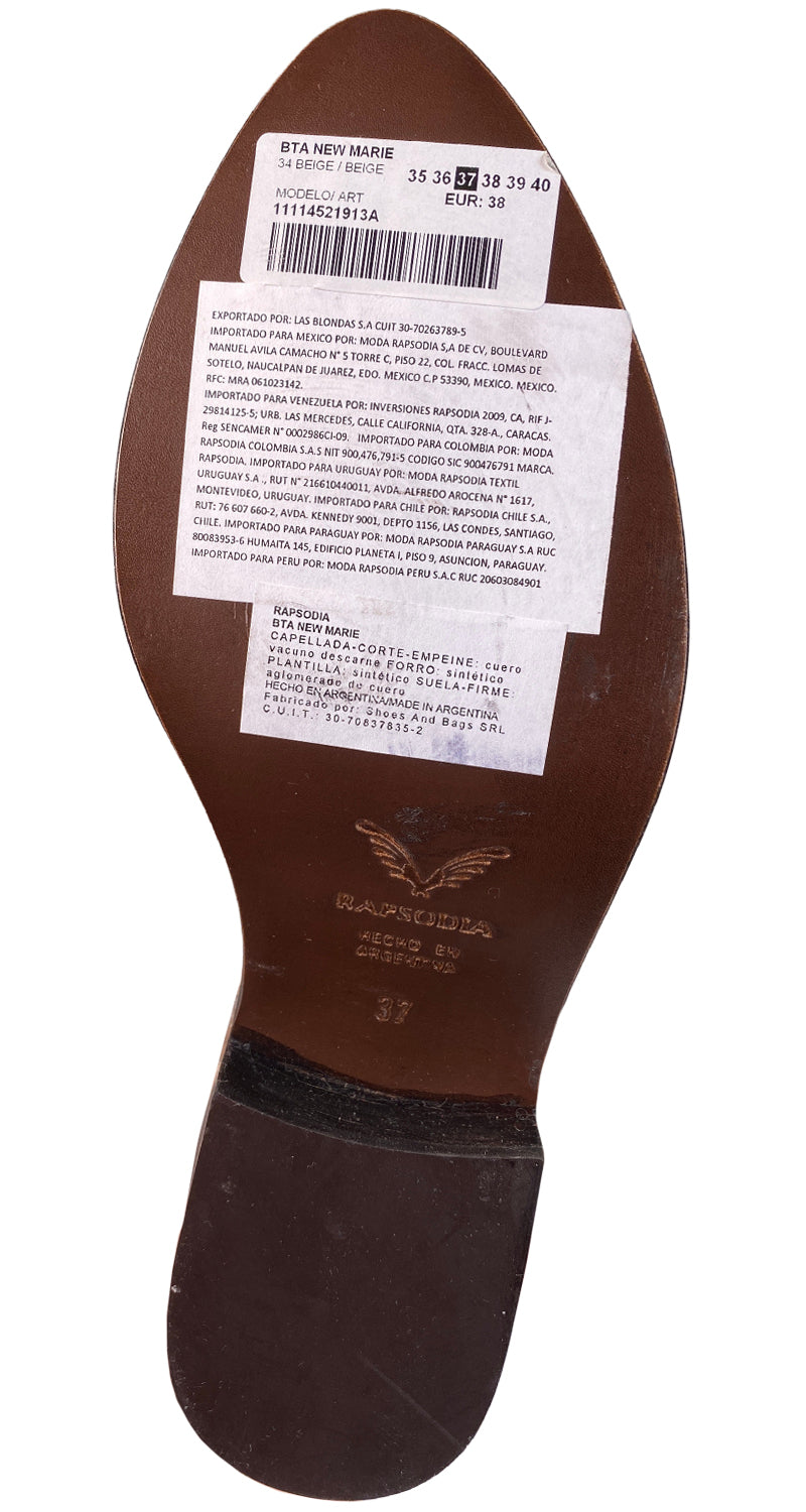 Las compras efectuadas de la categoría calzado, no tienen derecho a cambios ni devoluciones.