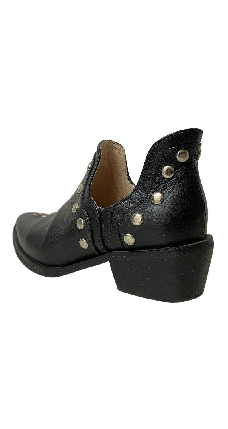 Botines en color Negro con aplicaciones de tachas en Plateado, tacón de 5 cm. Las compras efectuadas de la categoría calzado, no tienen derecho a cambios ni devoluciones.
