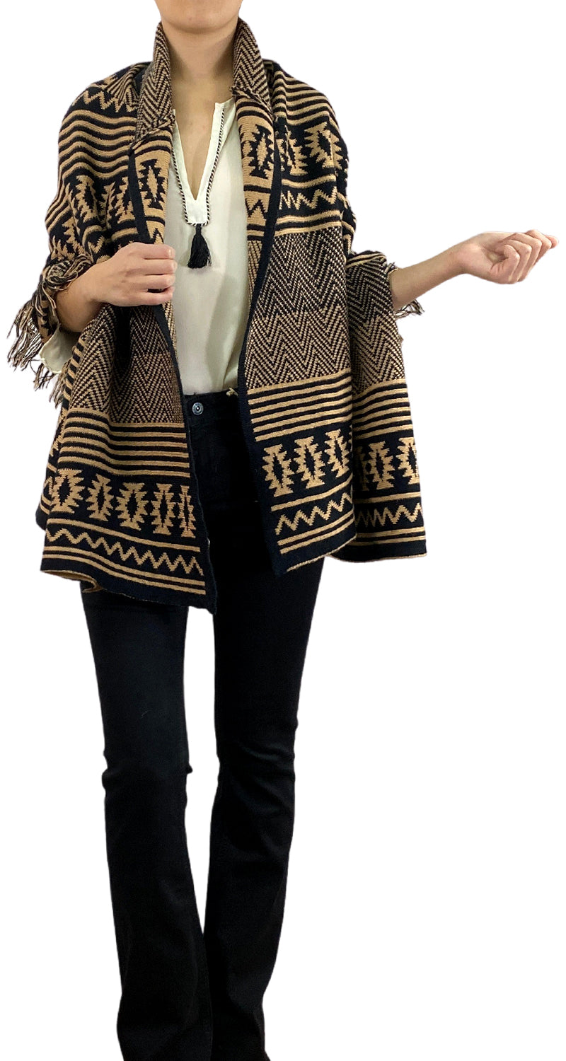 Bufanda tejida en color Café y Negro con flecos. Medidas: 200 x 95 cm