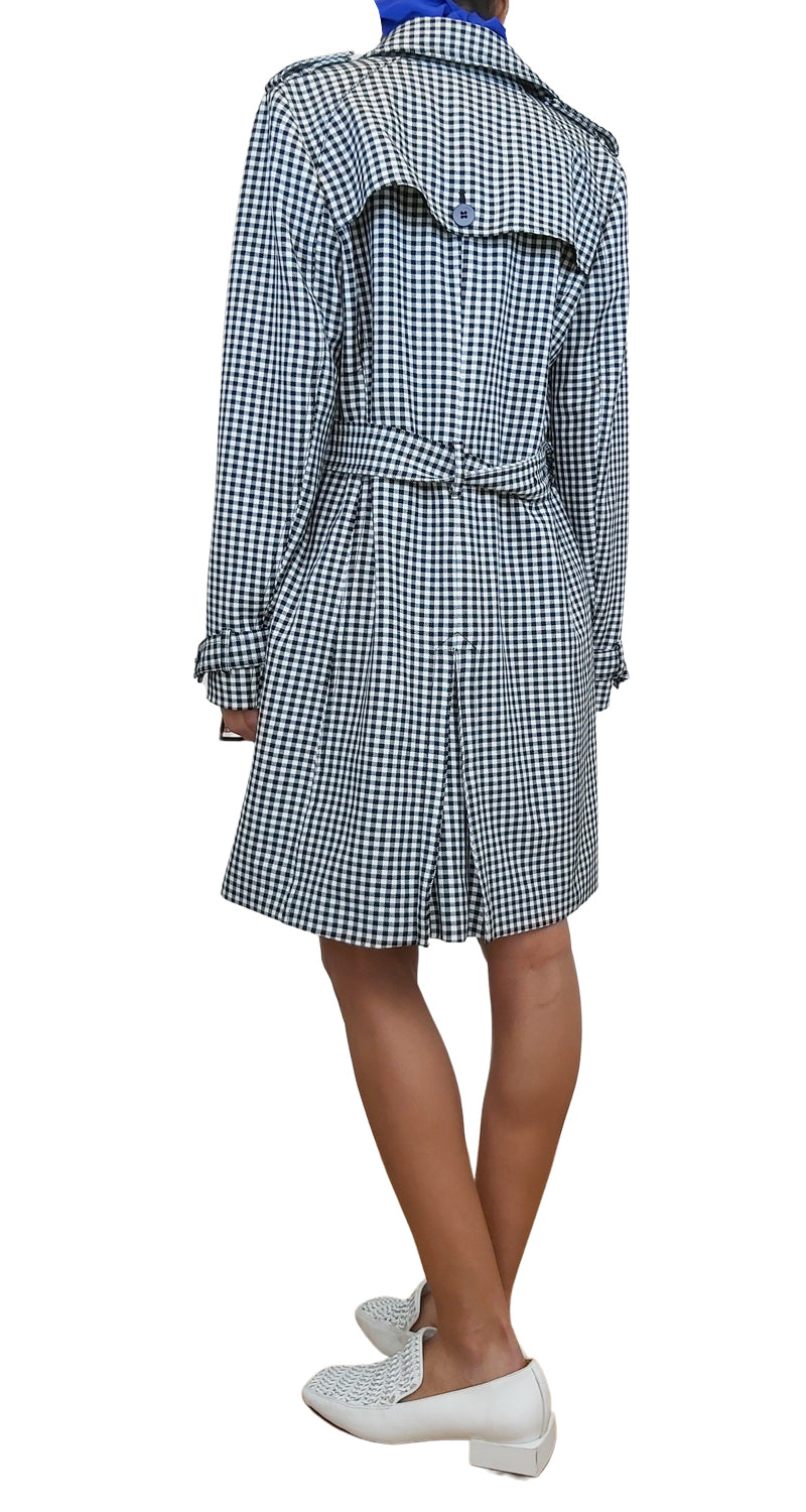 Abrigo con tela cuadrille tipo Vichy en color Negro y Blanco. Con bolsillos en costados y lazo ajustable en cintura.