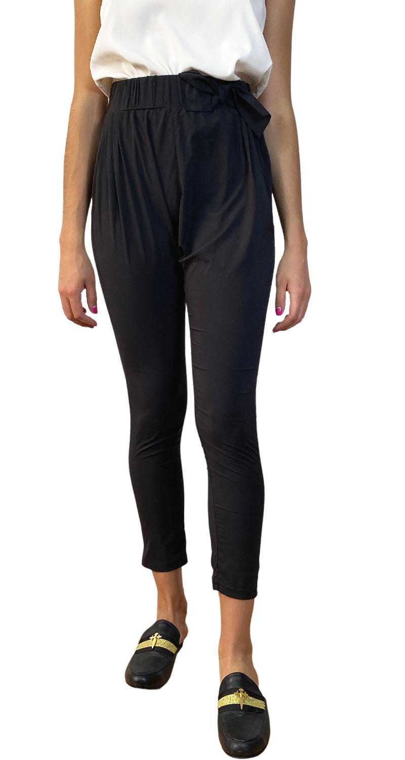 Babucha color Negro con cintura elasticada y detalle de lazo en delantero.