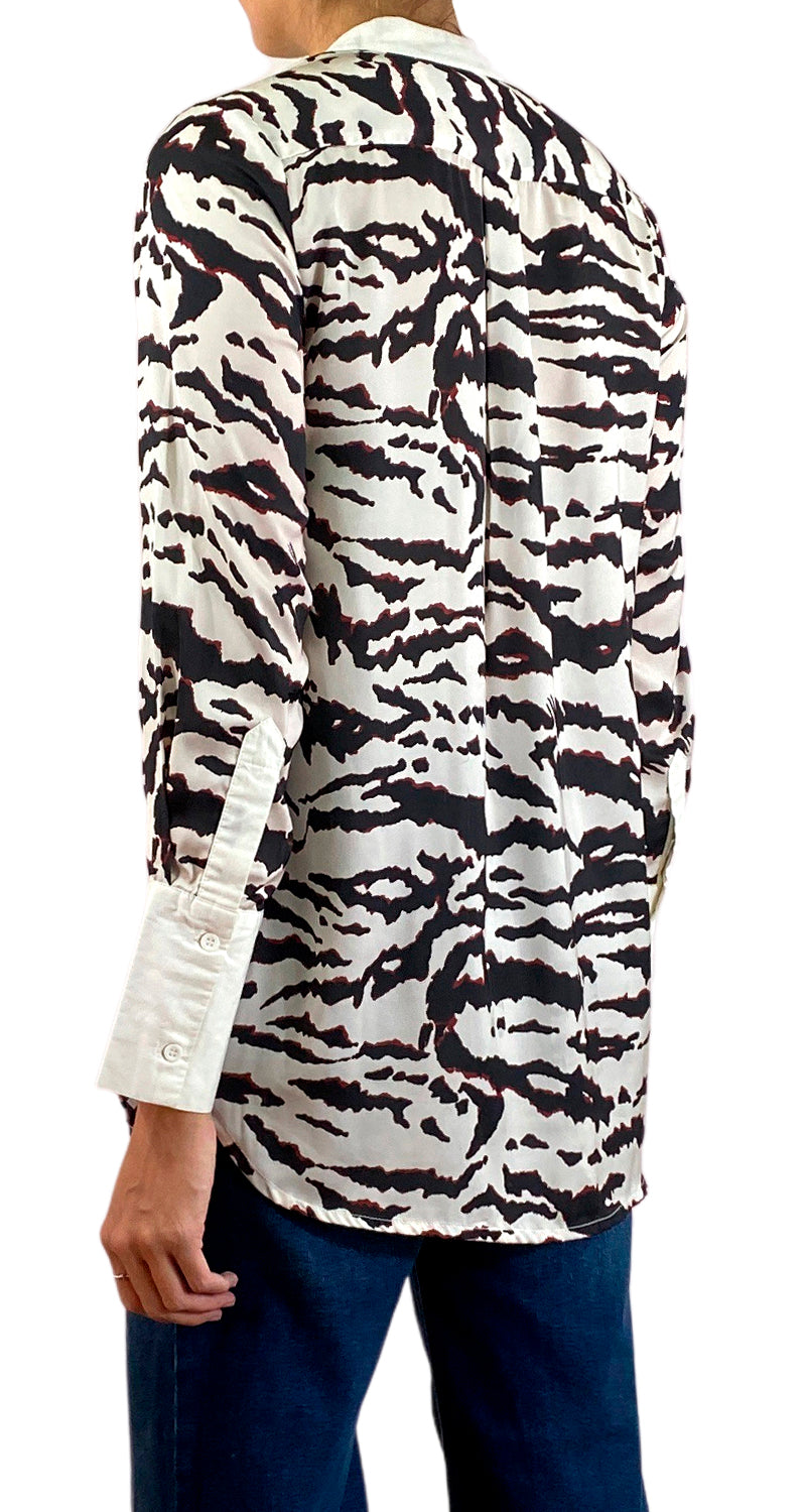 Blusa con estampado Animal Print, puños, cuello y botones en Blanco. Marca Cher para Basement