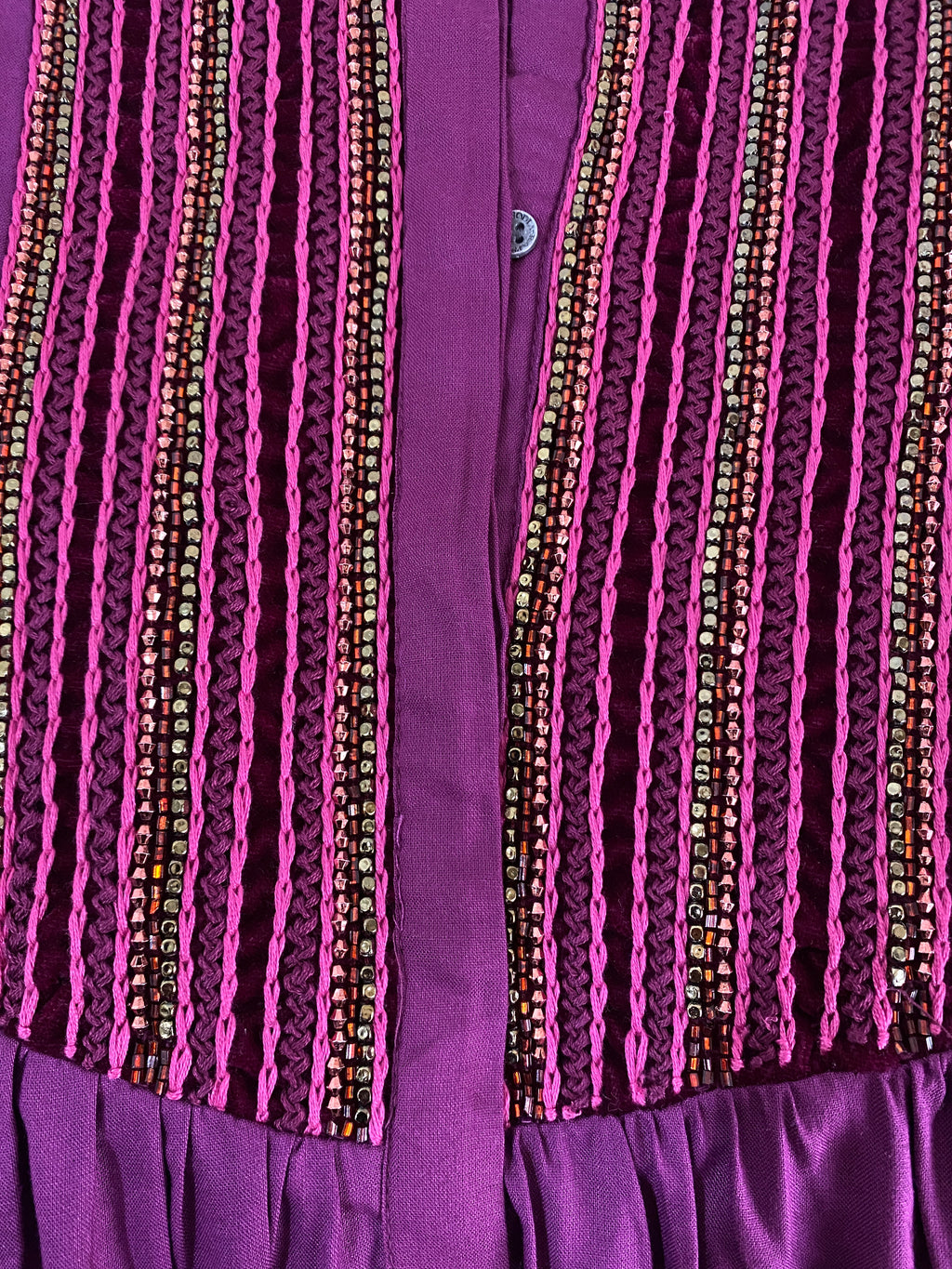 Camisa color Morado con bordado en hilos varios y aplicaciones de mostacillas.