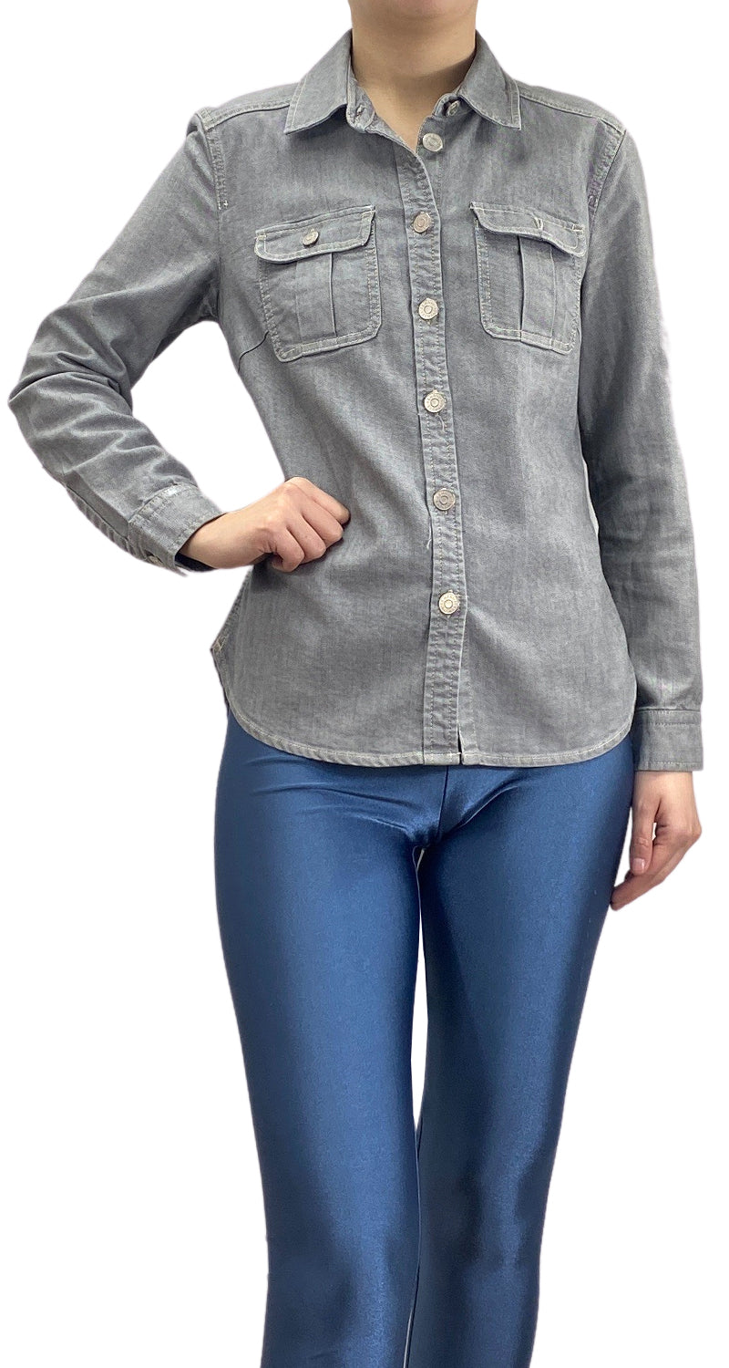 Camisa Denim color Gris con botones y bolsillos frontales sobrepuestos.