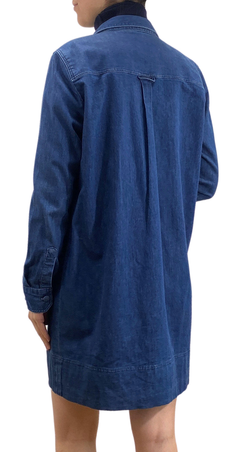 Camisa Denim color Azul con bolsillo sobrepuesto. Altura modelo 1.68.