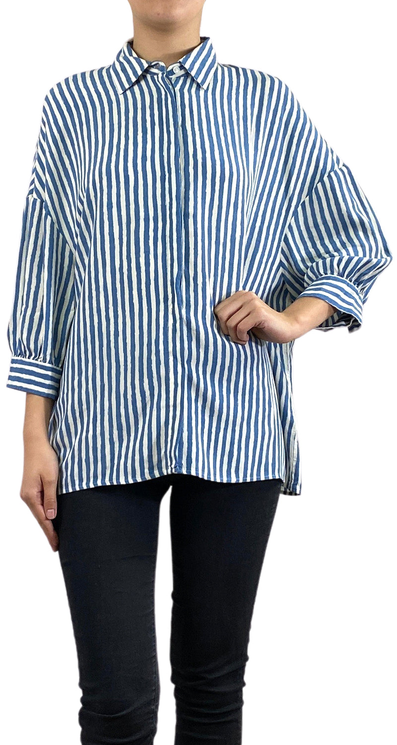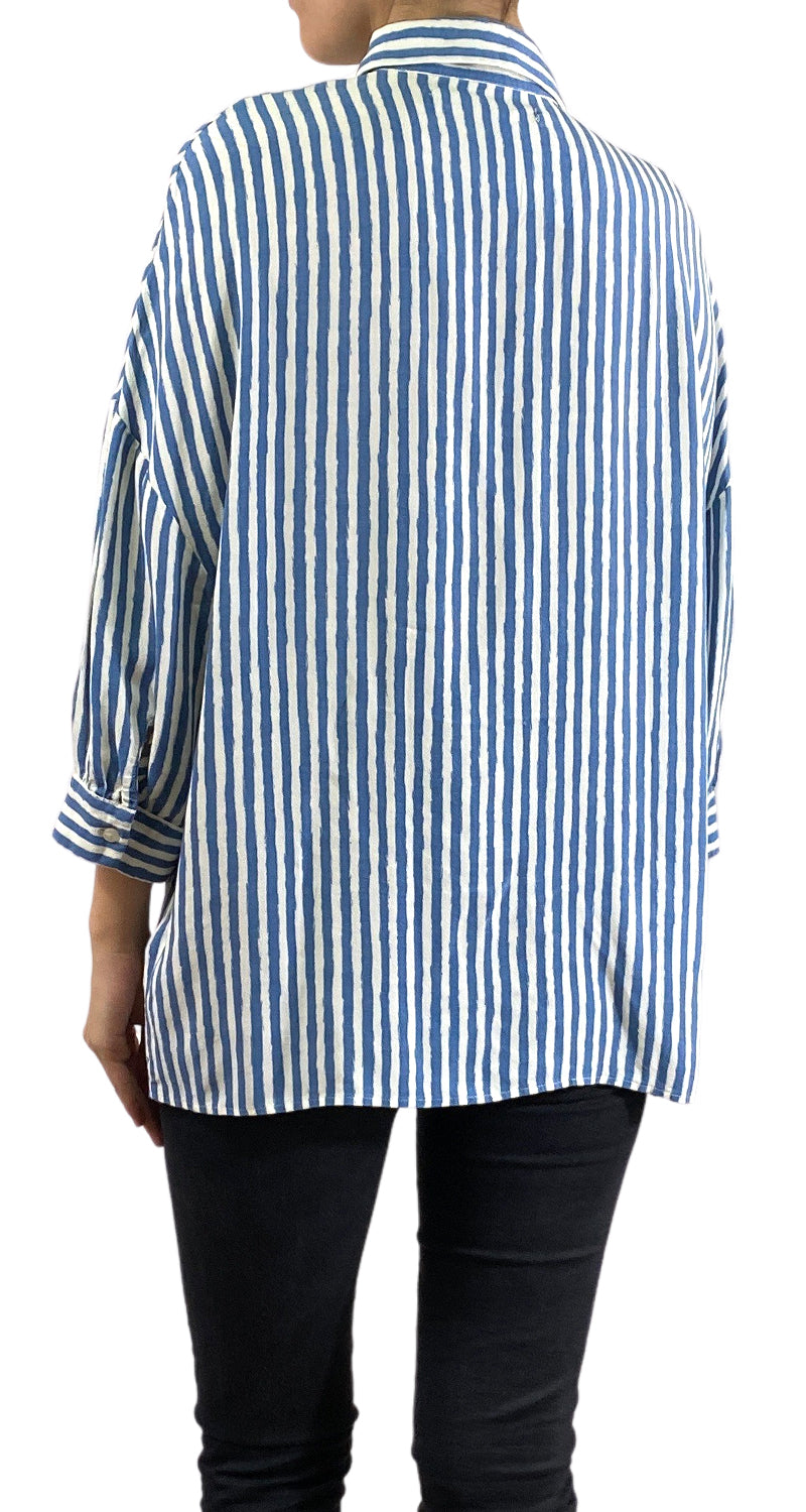 Camisa con diseño a rayas en Blanco y Azul.