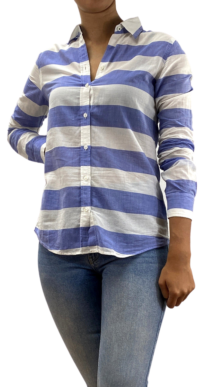 Camisa a rayas en color Azul y Blanco poco traslucido.