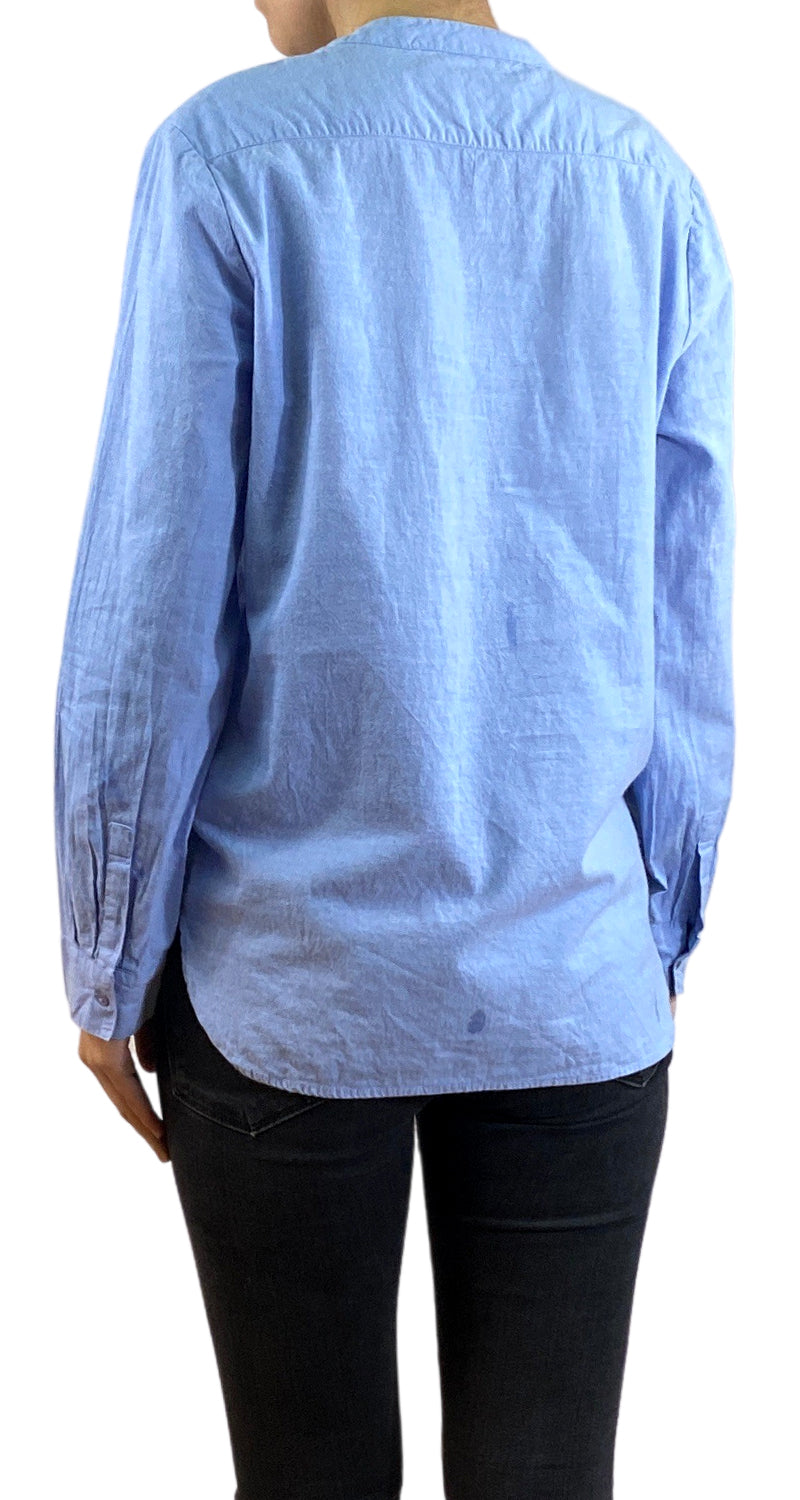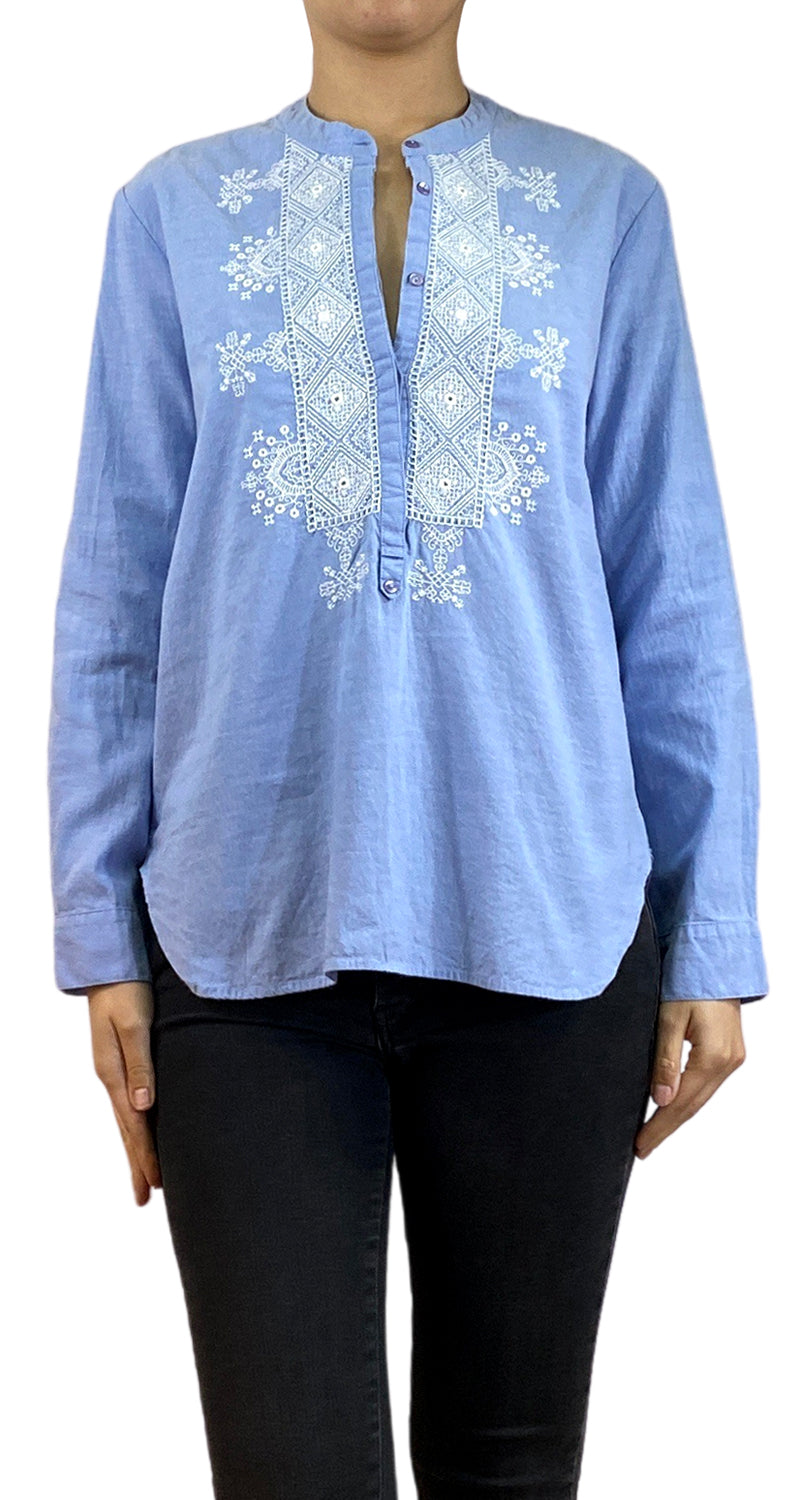 Camisa color Azul con bordado color Blanco en delantero y botones.