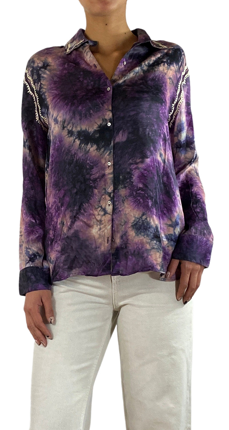 Camisa Tie Dye con diseño bordado en espalda, hombros y cuello.