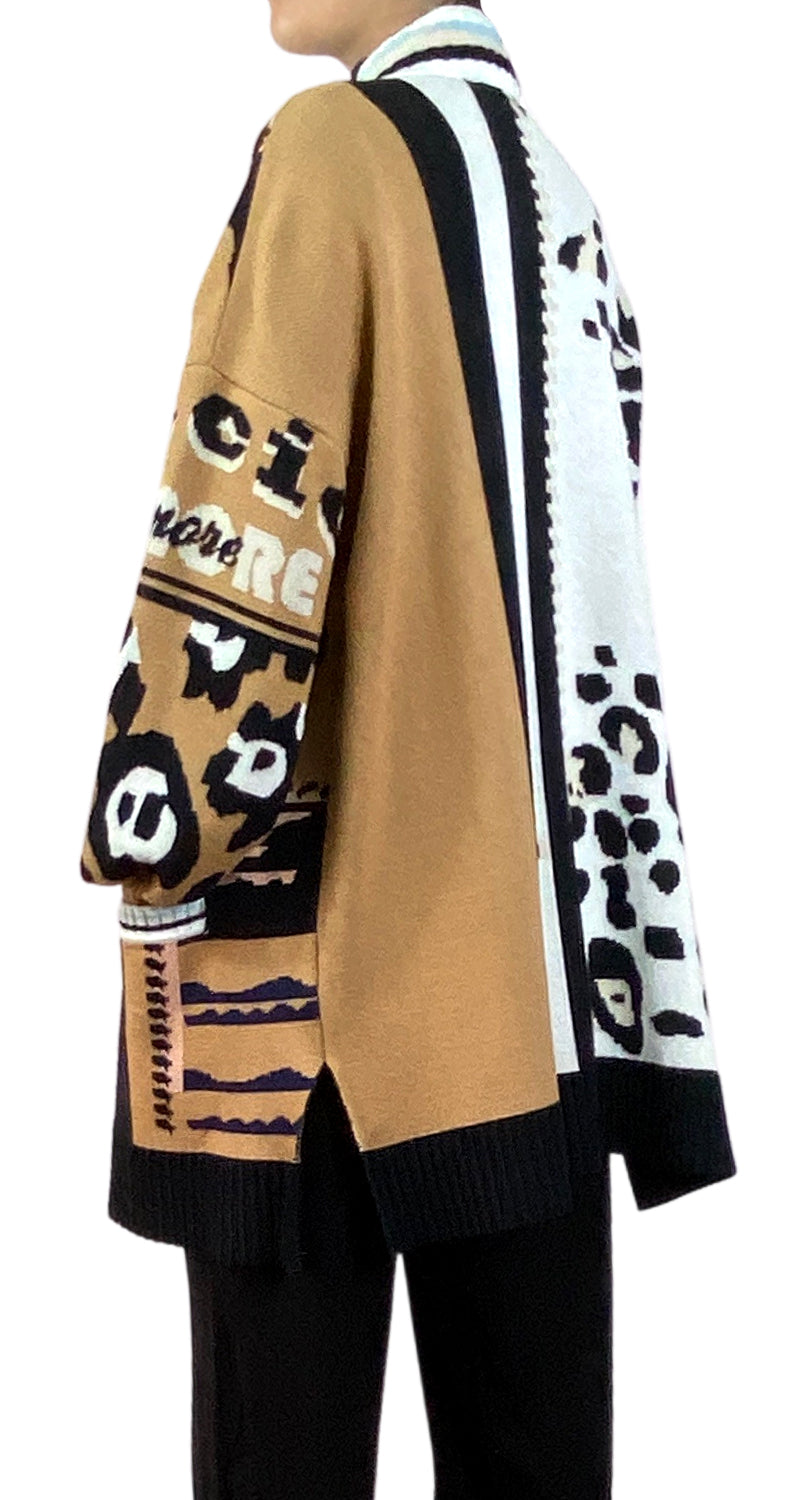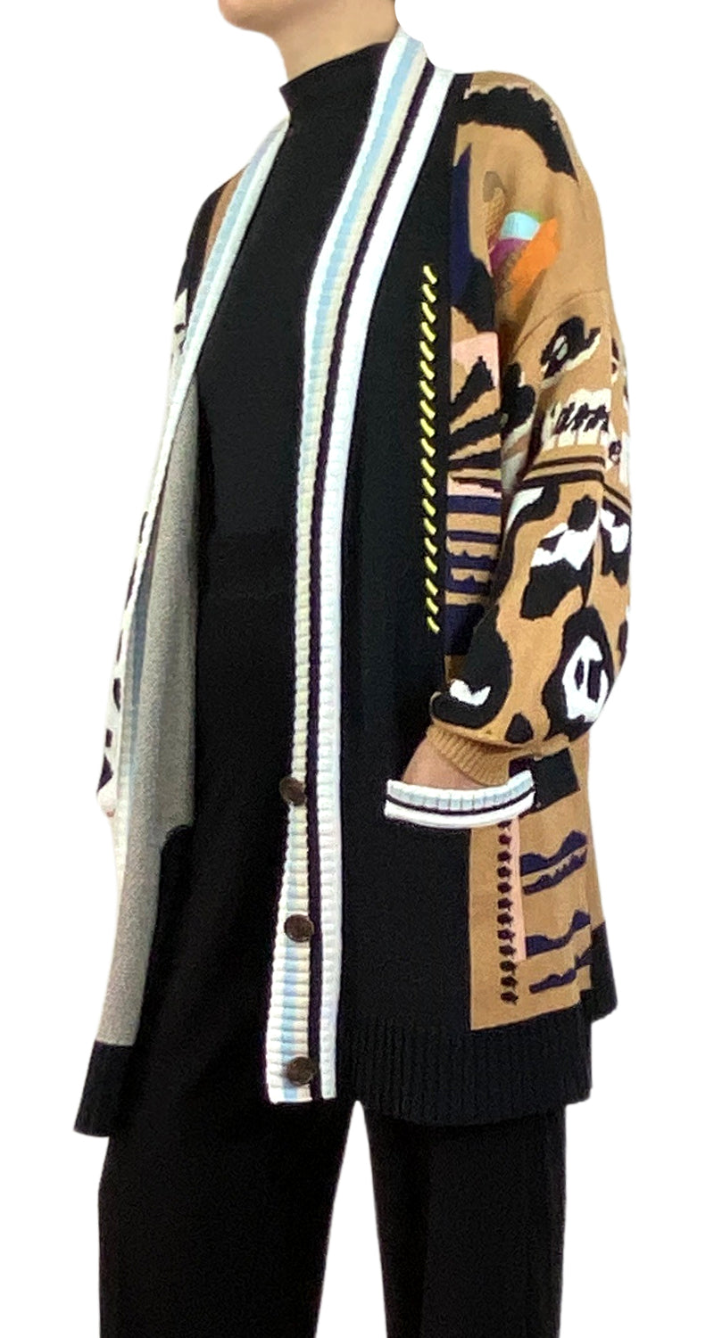 Cárdigan con estampado Multicolor, bolsillos en delantero y 3 botones, Talla 2 de la marca.