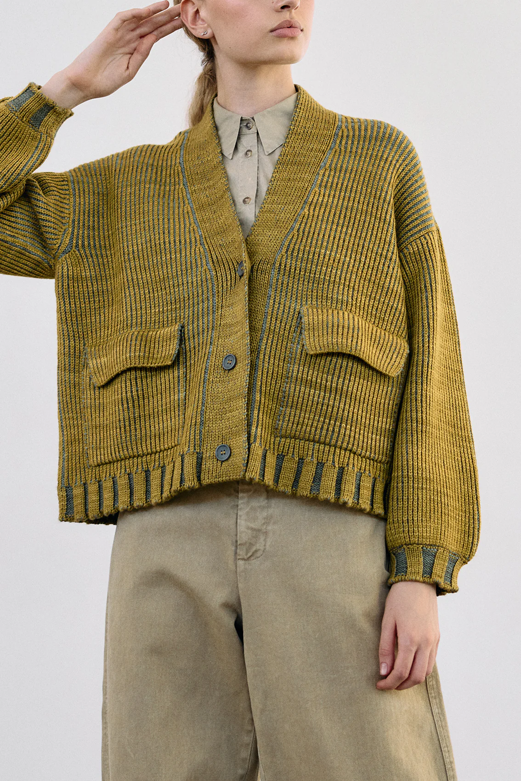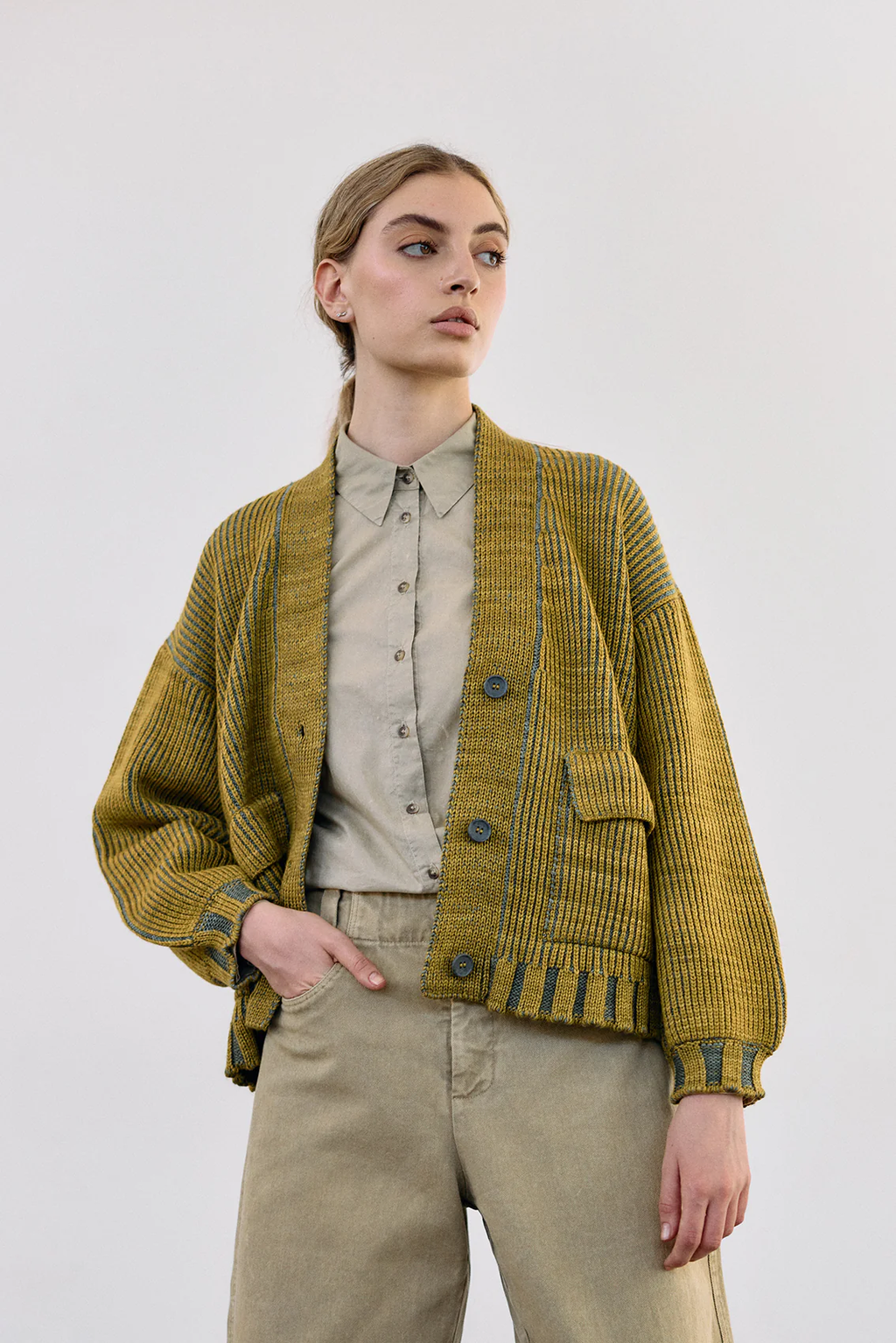 Cárdigan Hand-Dyed Lana Merino - Mix Ocre