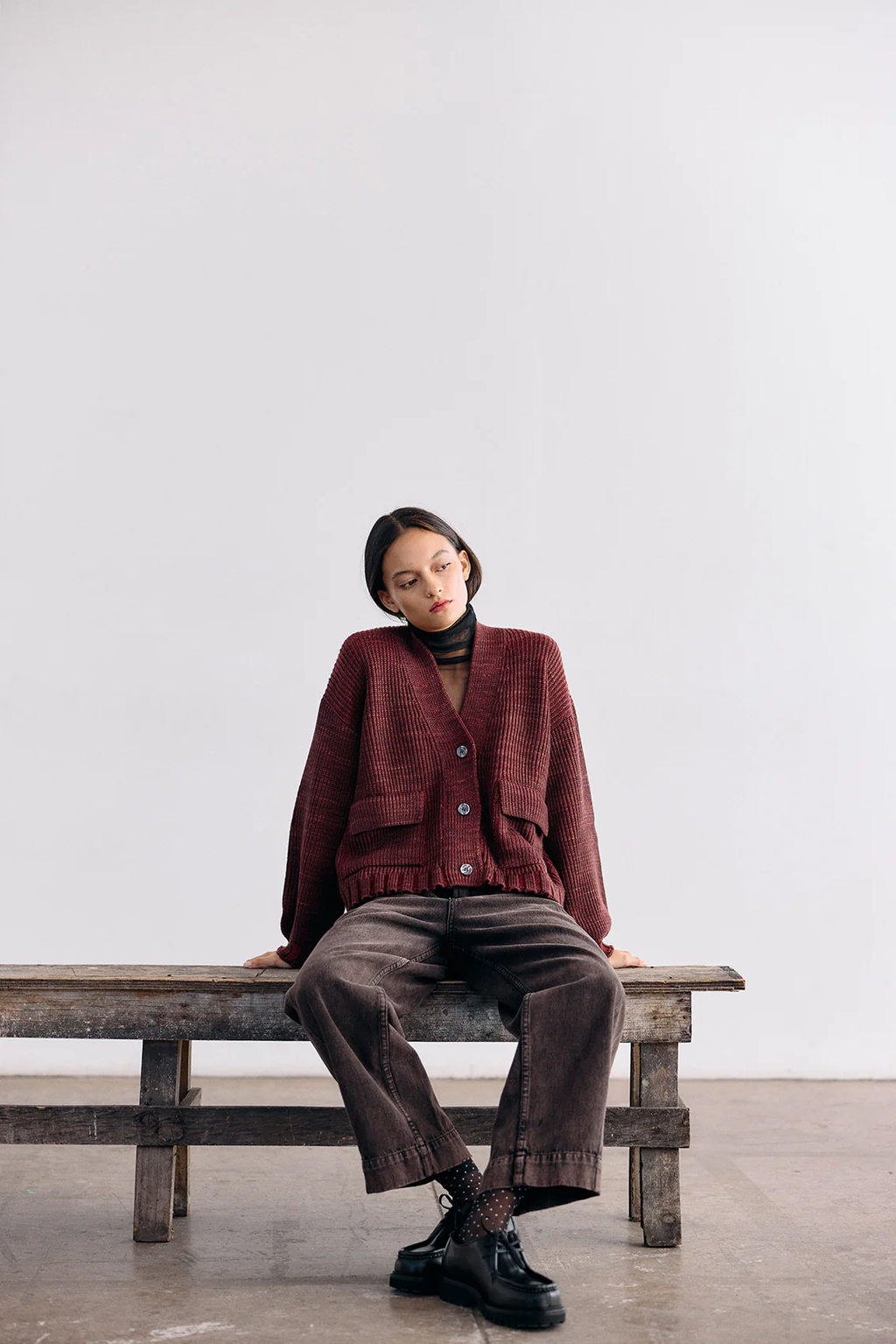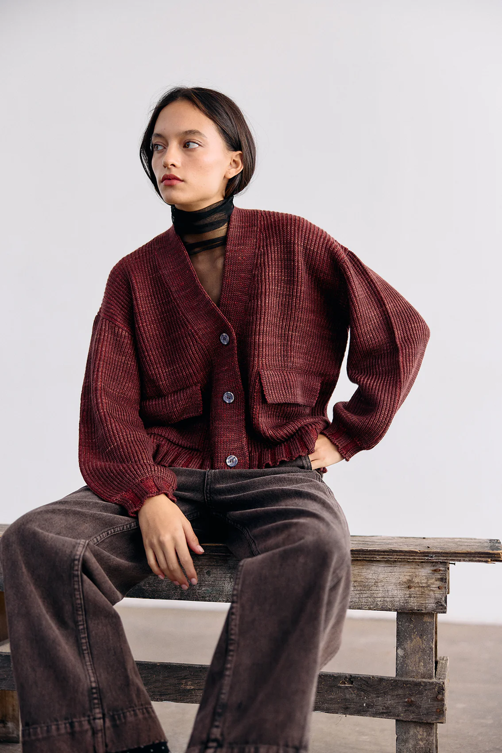 Cárdigan Hand-Dyed Lana Merino - Mix Vino