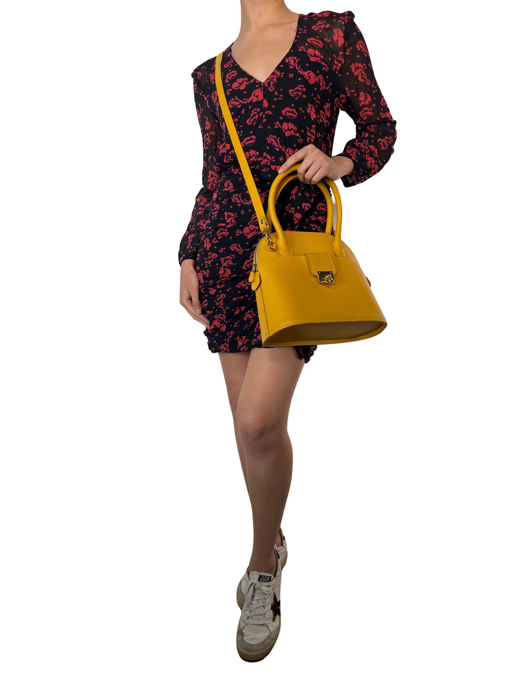 Se siente como cuero. Medidas: 26 x 24 x 12 cm. No incluye dust bag.