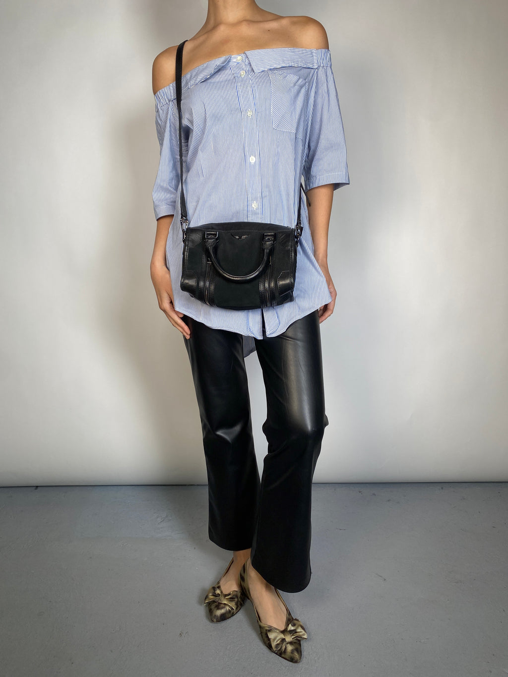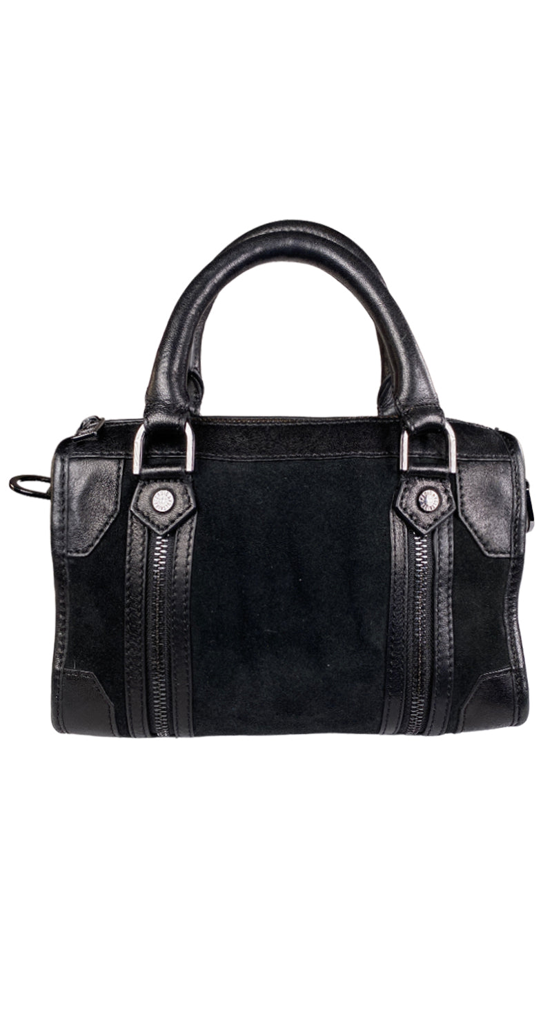 El materia se siente como cuero. Medidas: 14 x 23 x 10 cm. Incluye dust bag.