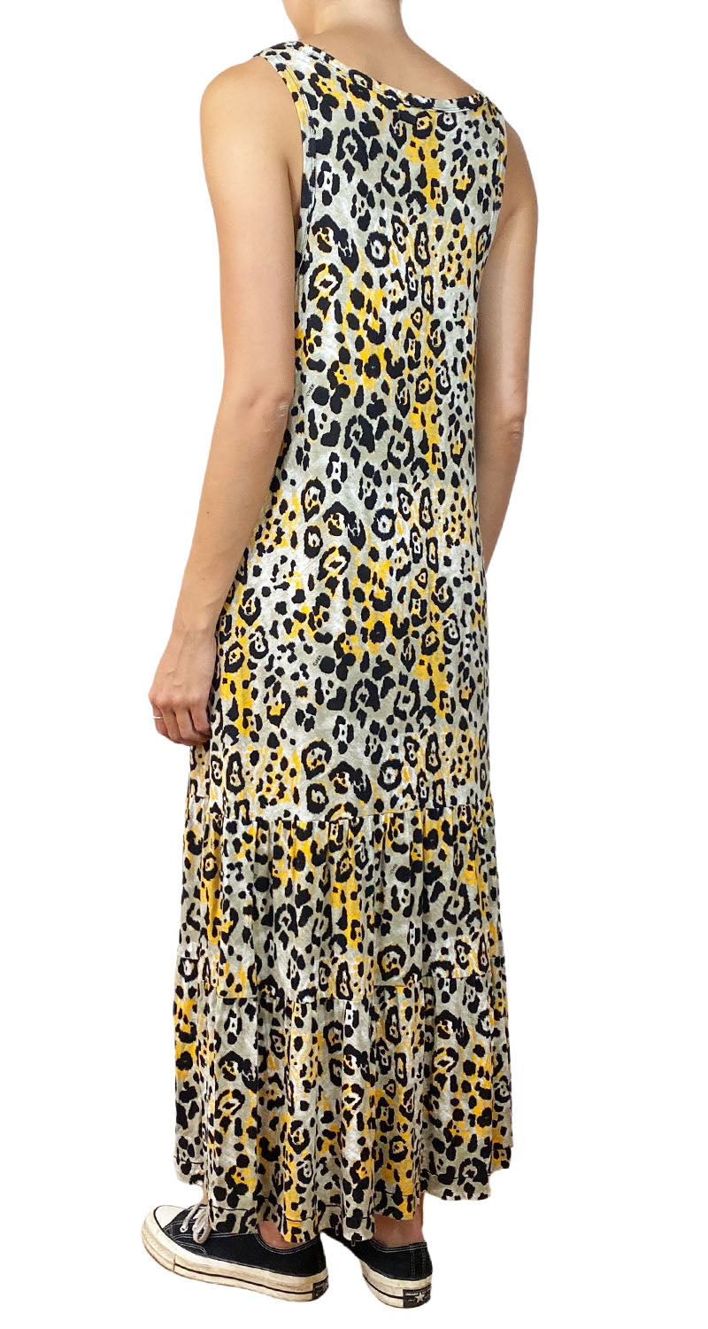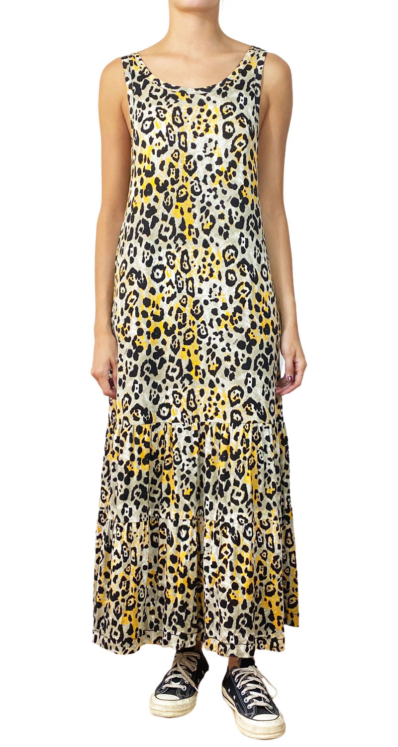 Vestido Animal print modelo sin mangas. Plisada en ruedo.