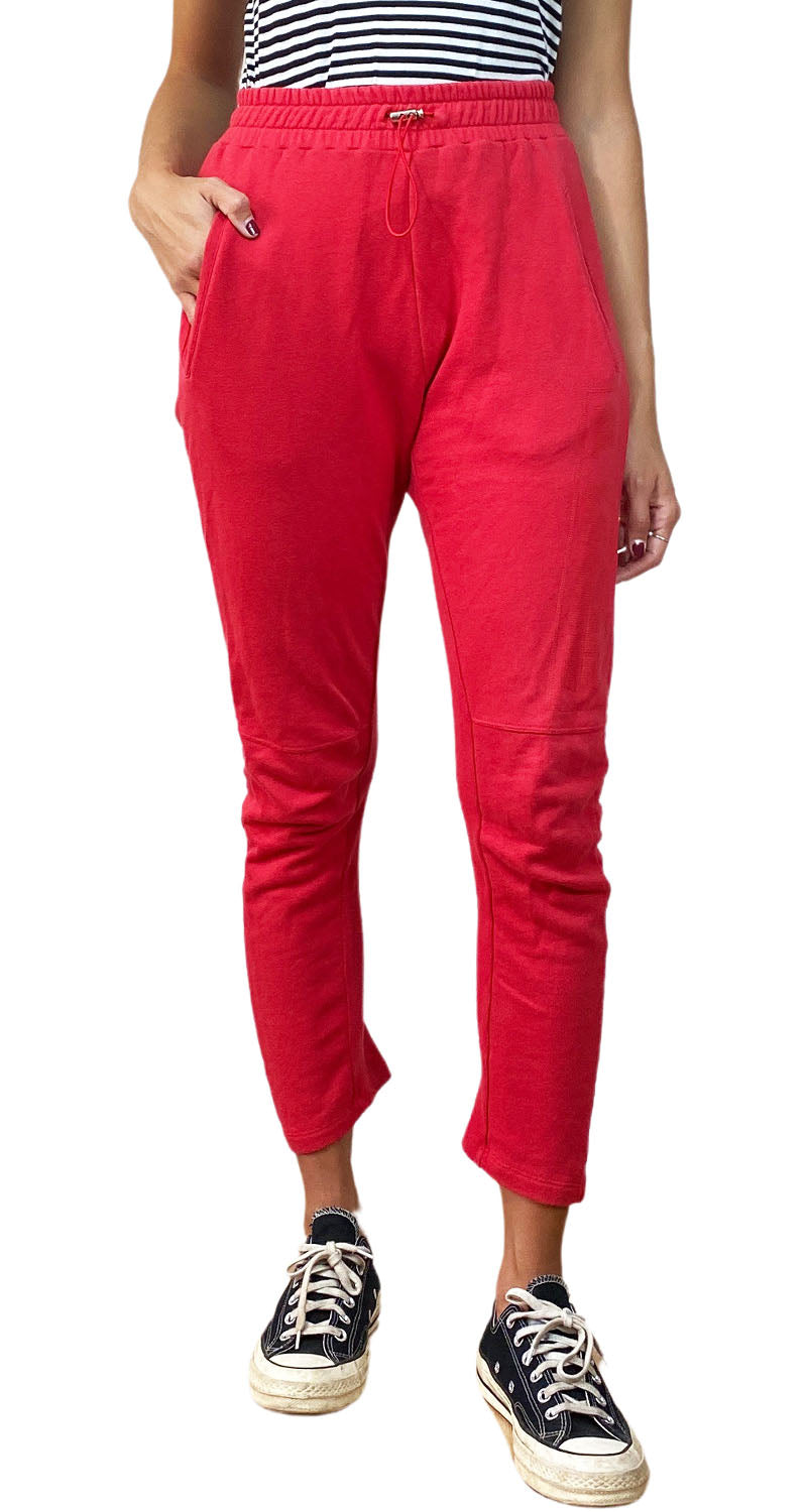 Pantalón de buzo de pierna ajustada. Pretina elastica con bolsillos en delantero.