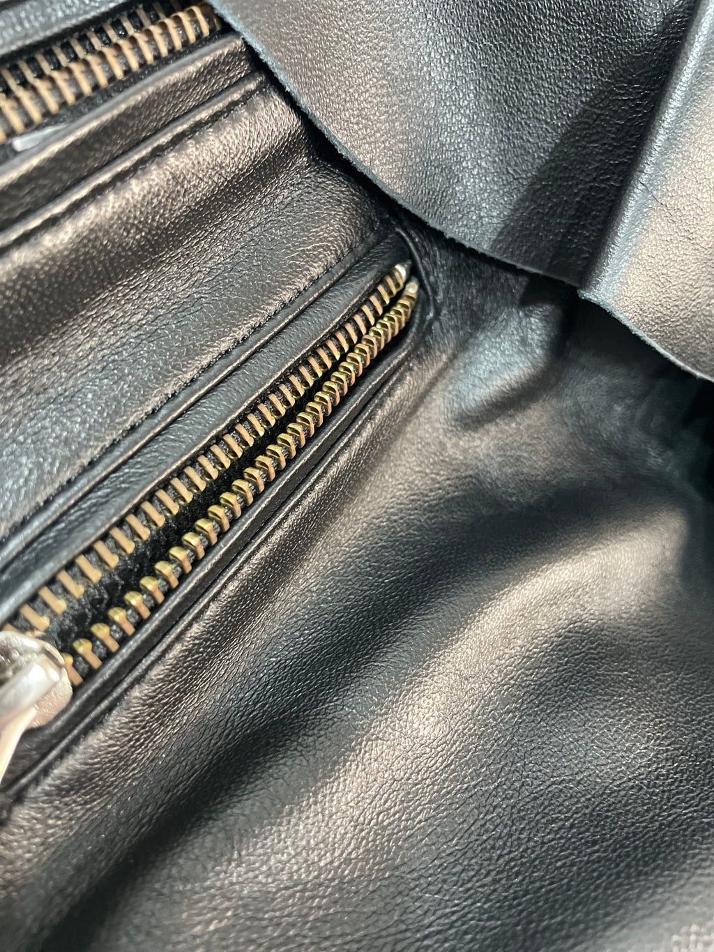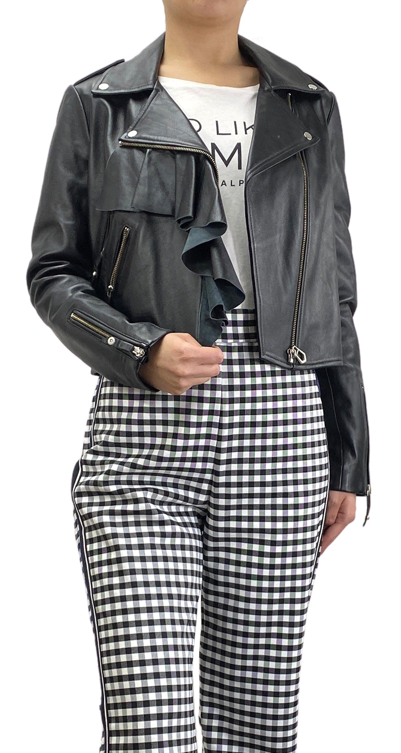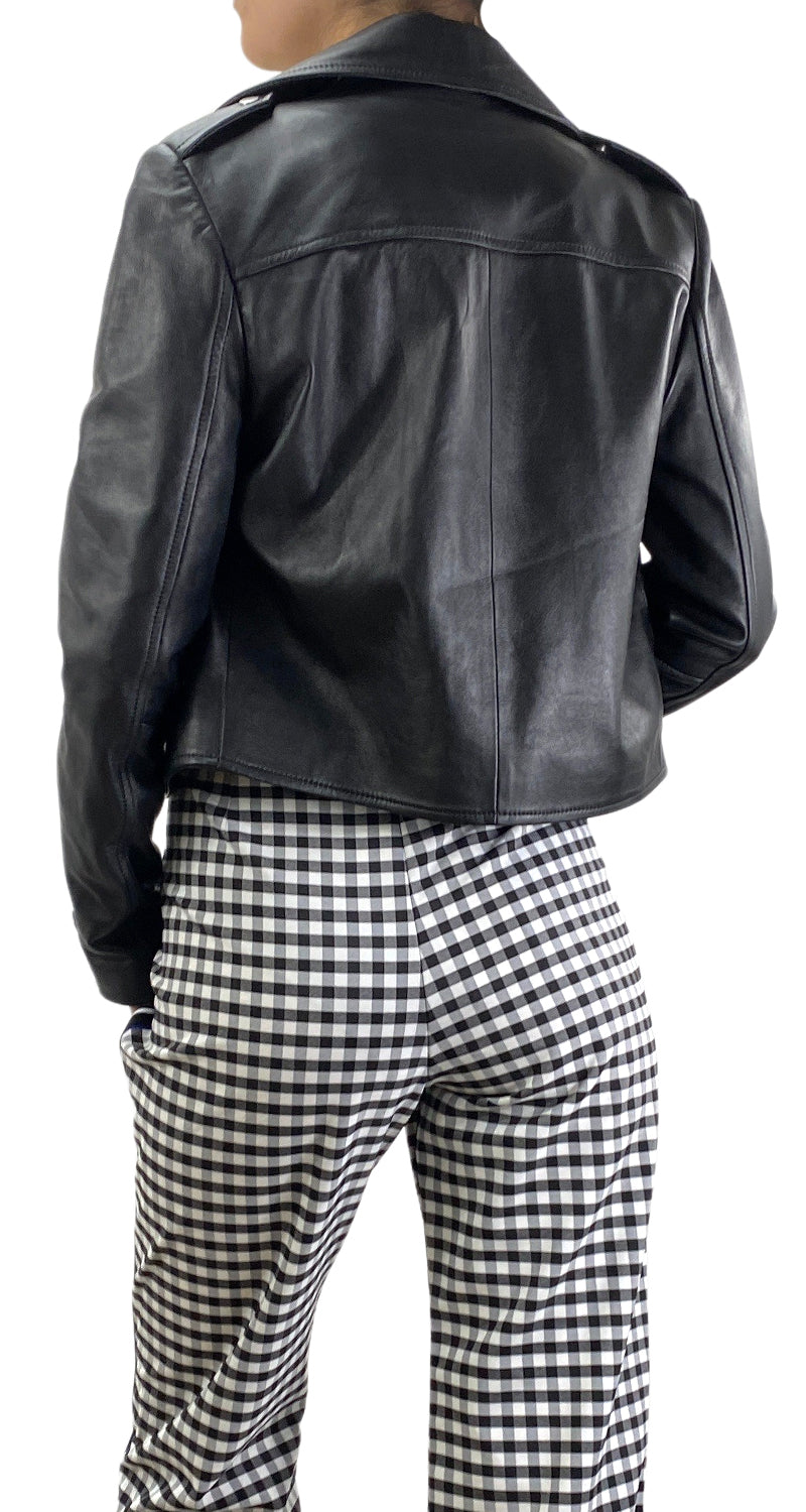 Chaqueta de cuero en color Negro con dos bolsillos, cierre y vuelos en delantero. Talla 40/1 de la marca.