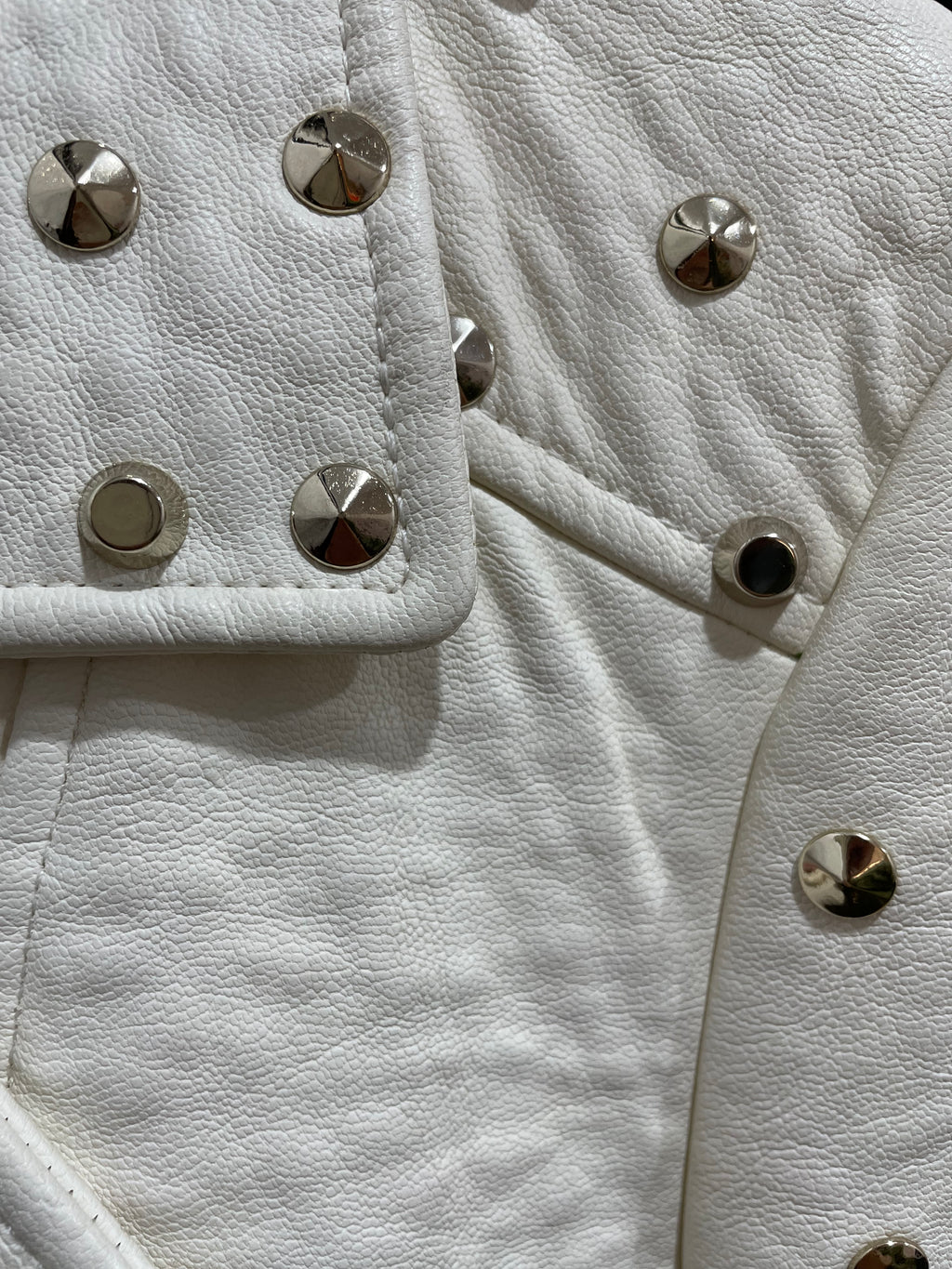 Chaqueta color Blanco de ecocuero estilo biker con aplicación de tachas.