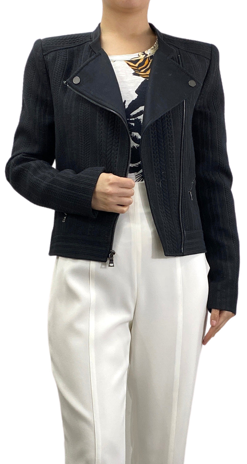Chaqueta color Negro estilo biker con estampado estilo jacquard.