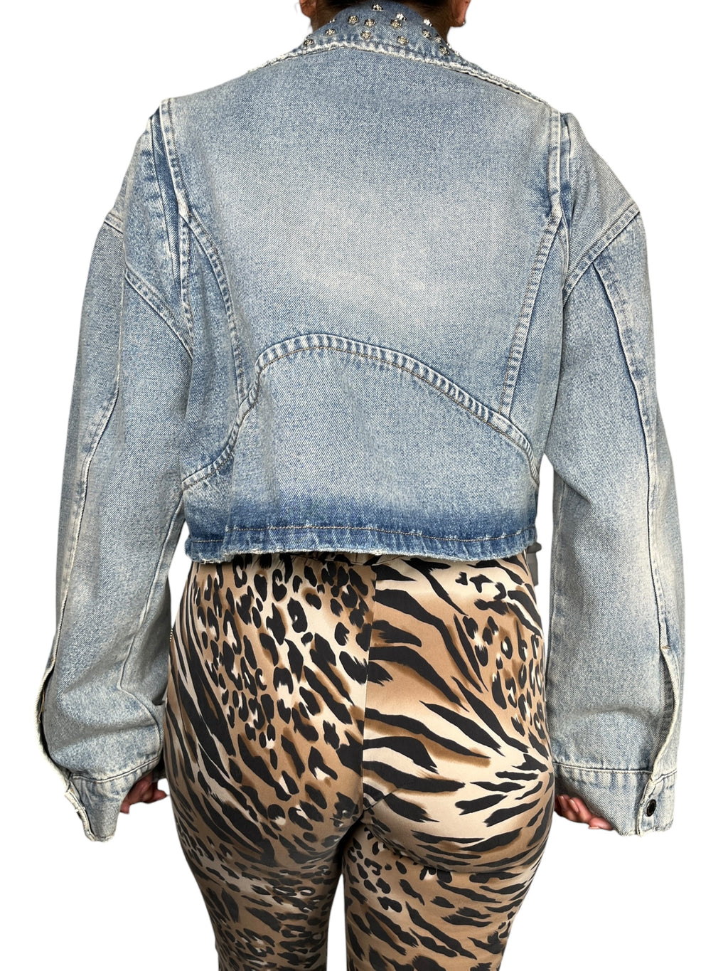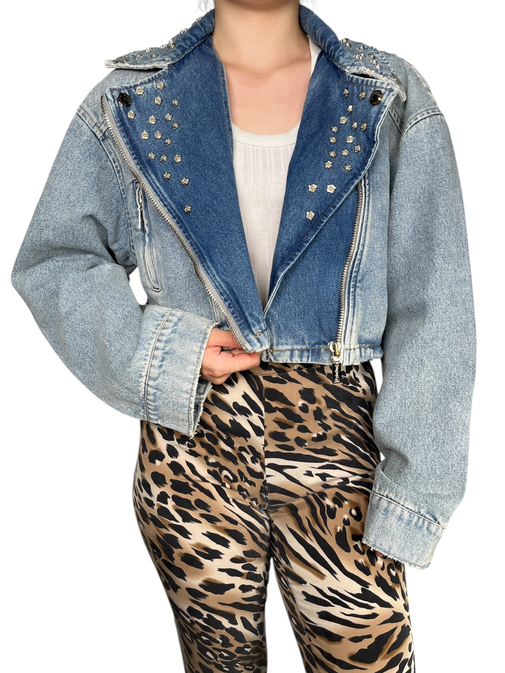 Chaqueta Jeans Flores Brillos