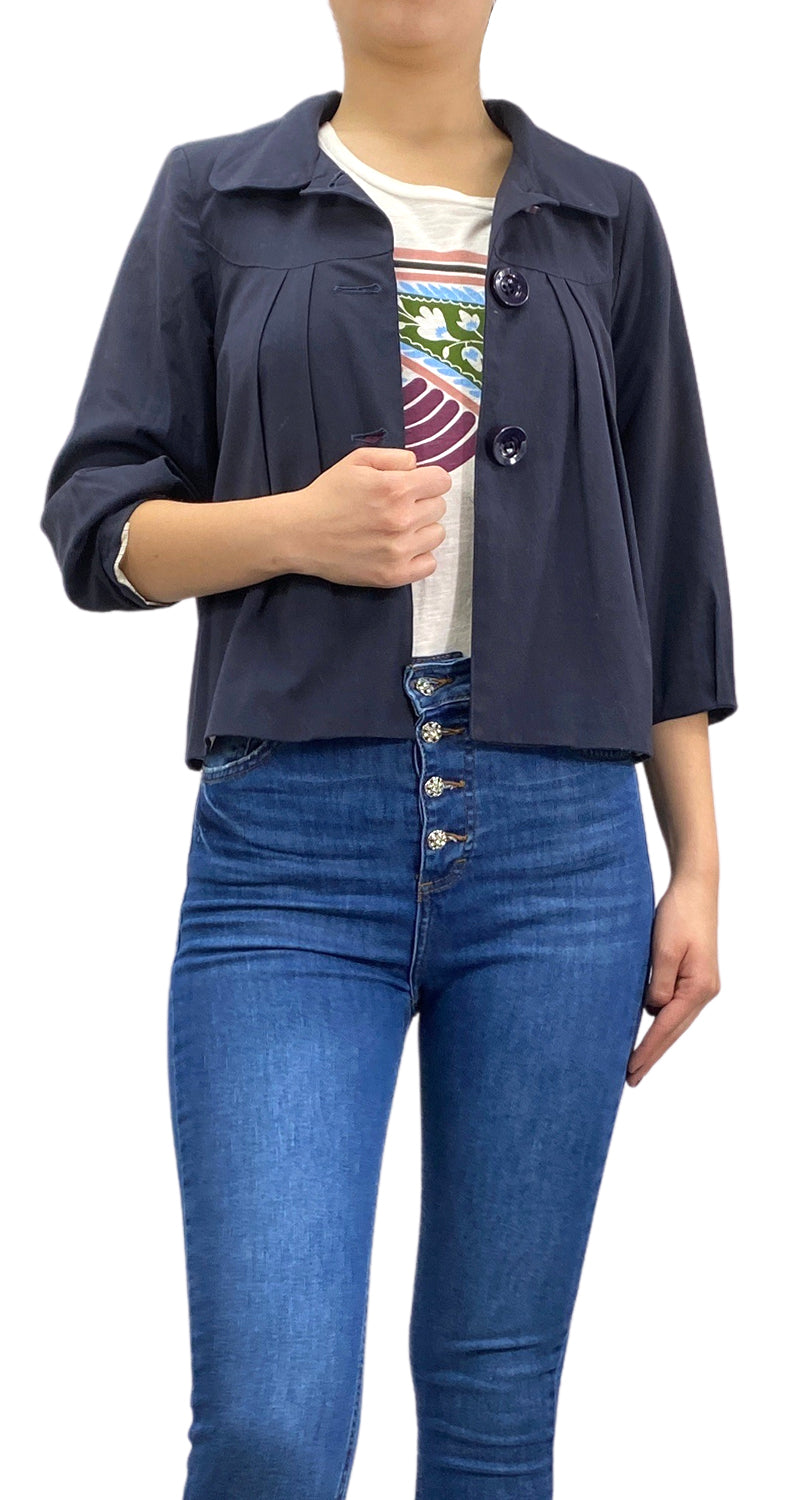 Chaqueta ligera color Azul Oscuro con tres botones y plises en delantero. Talla 1 de la marca.