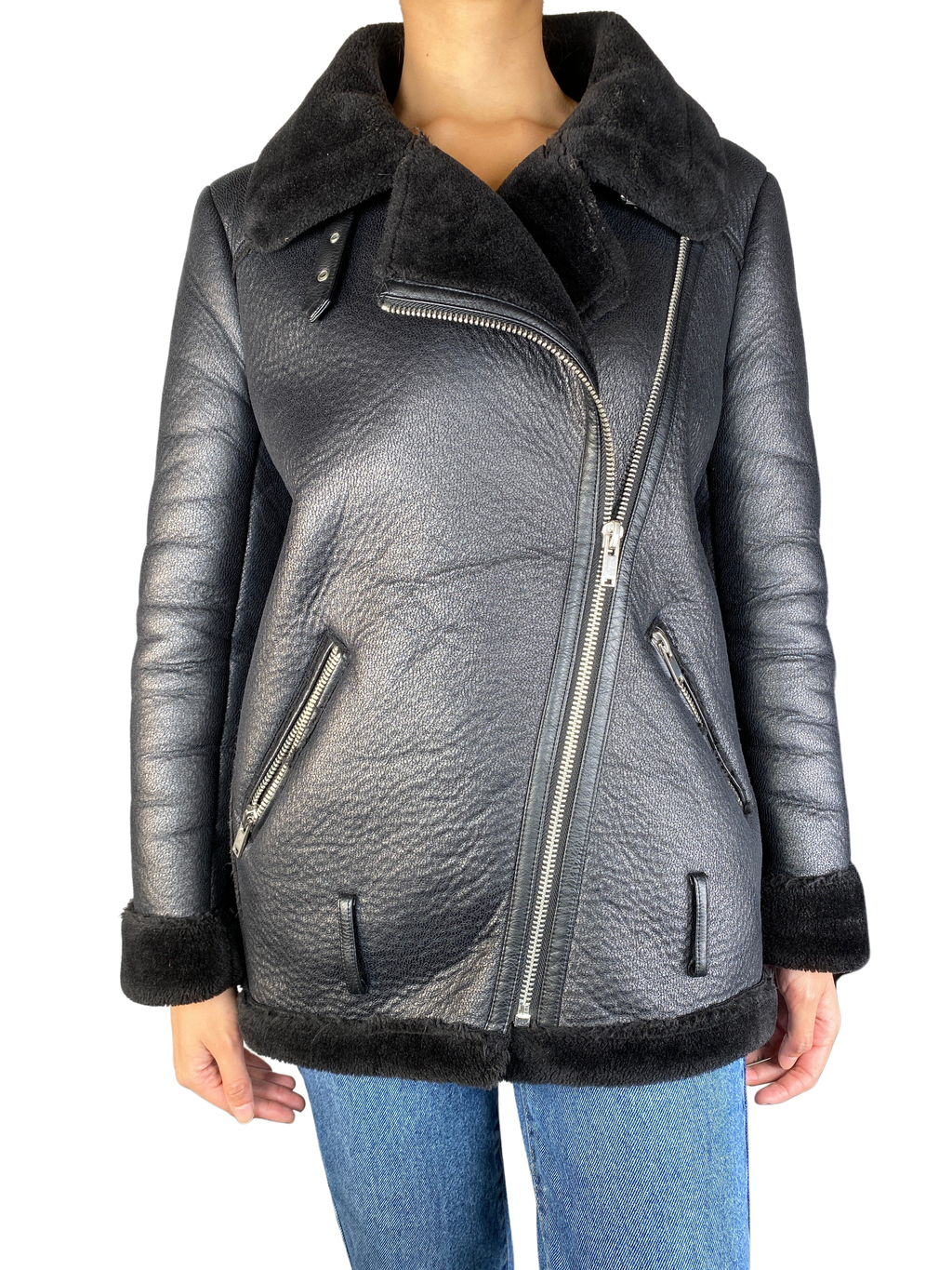 Chaqueta Negra Aviadora Cuero Sintético