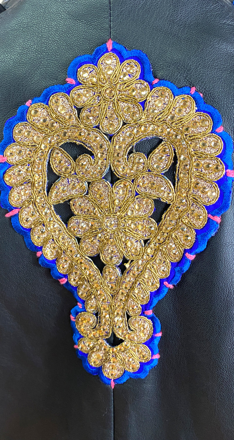 Chaqueta color Negro de ecocuero estilo biker con diseño de aplicación.