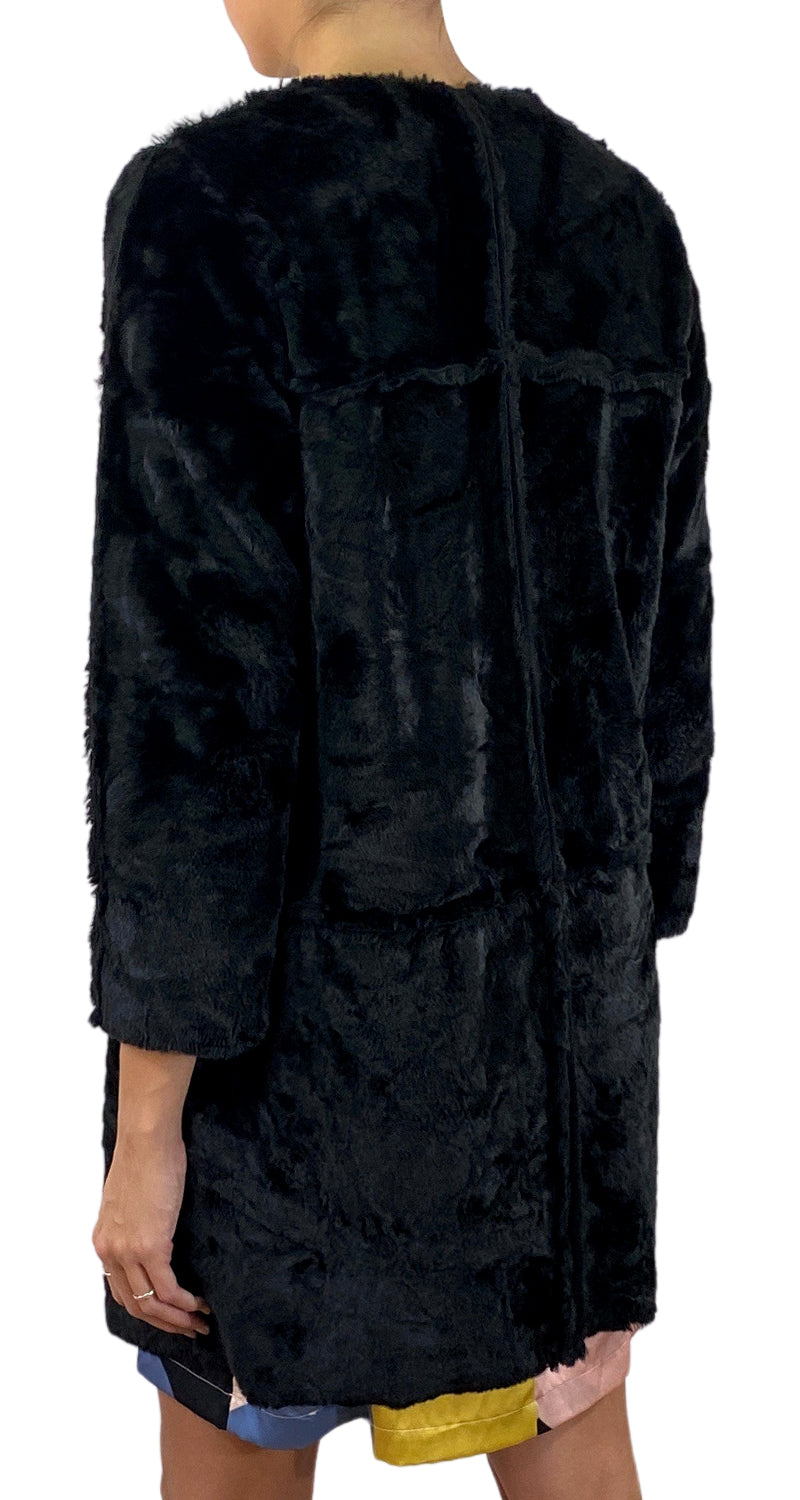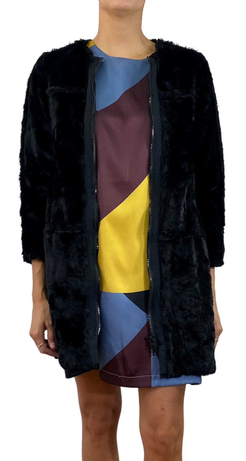 Chaqueta color Negro de piel sintética con cierre. Altura modelo 1.71.