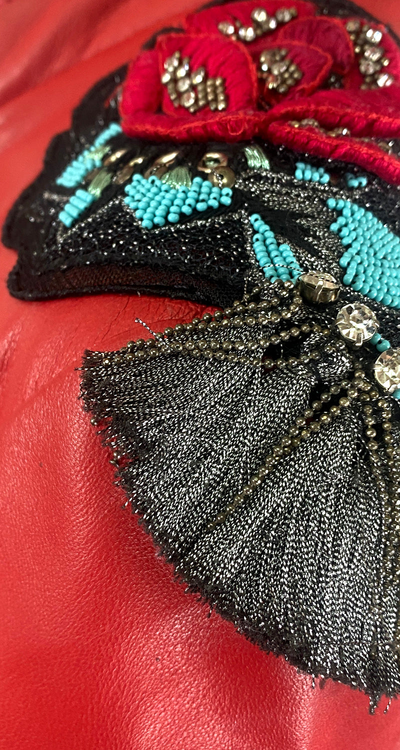 Chaqueta Roja Cuero Bordado