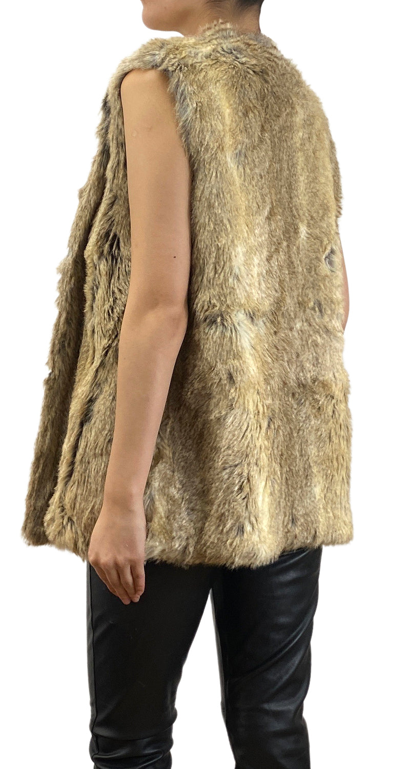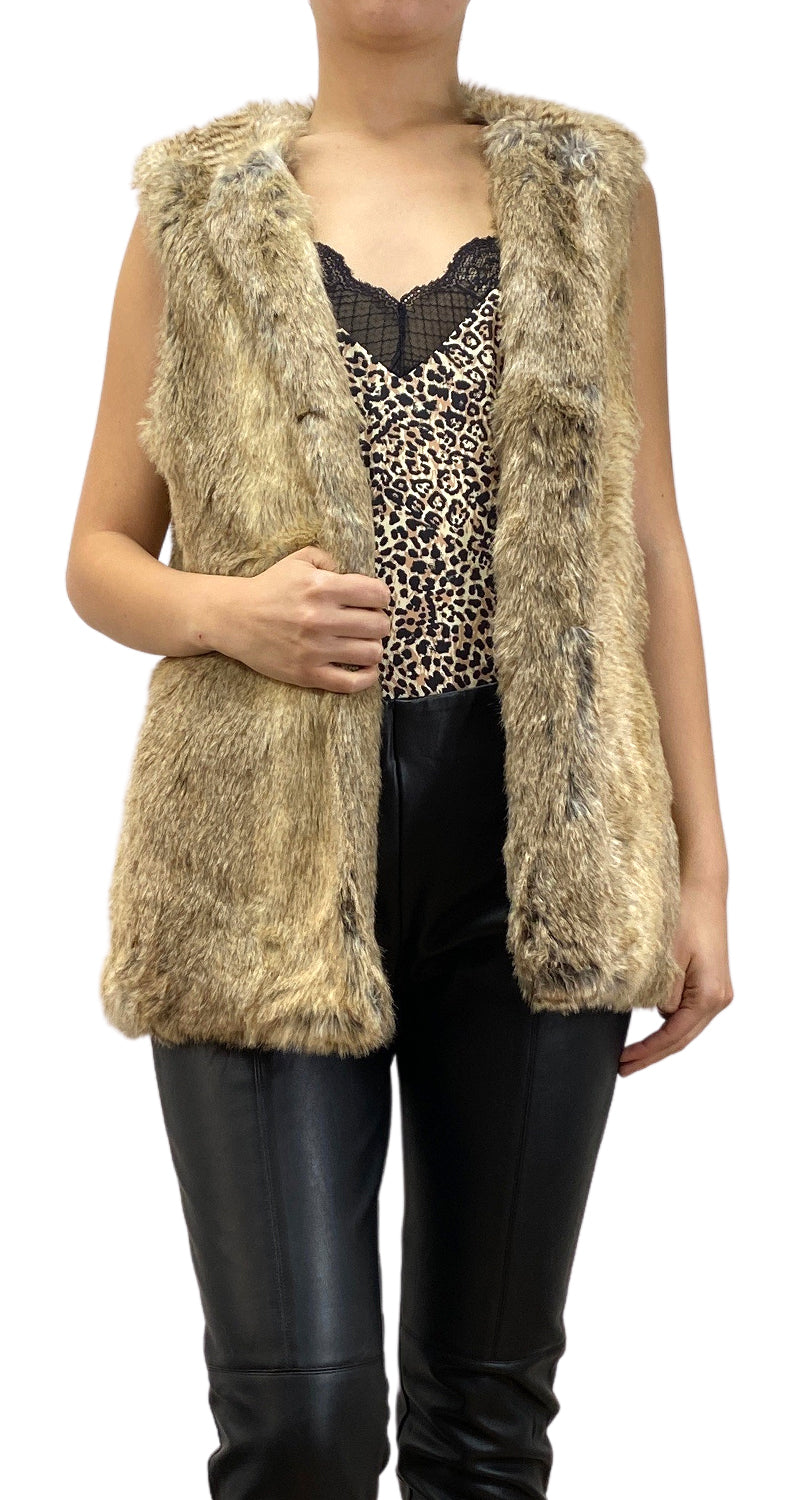 Chaqueta sin mangas de piel sintética con bolsillos laterales.