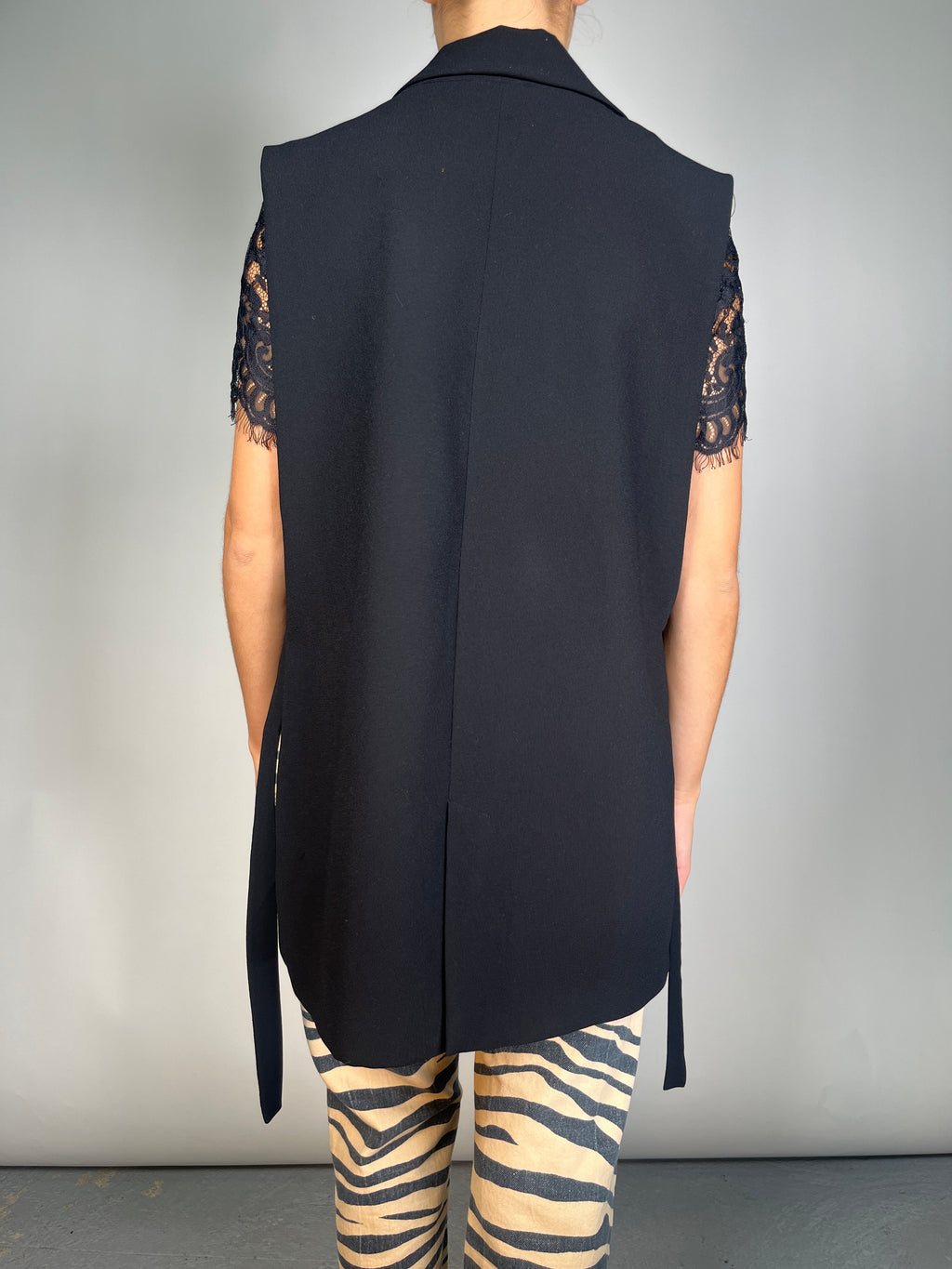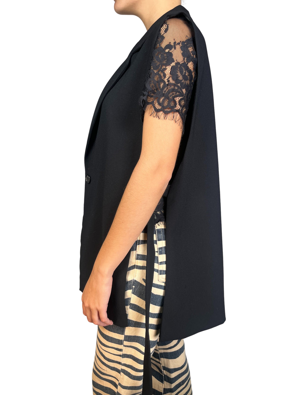 Chaqueta con abertura en laterales. Altura de modelo 1,63