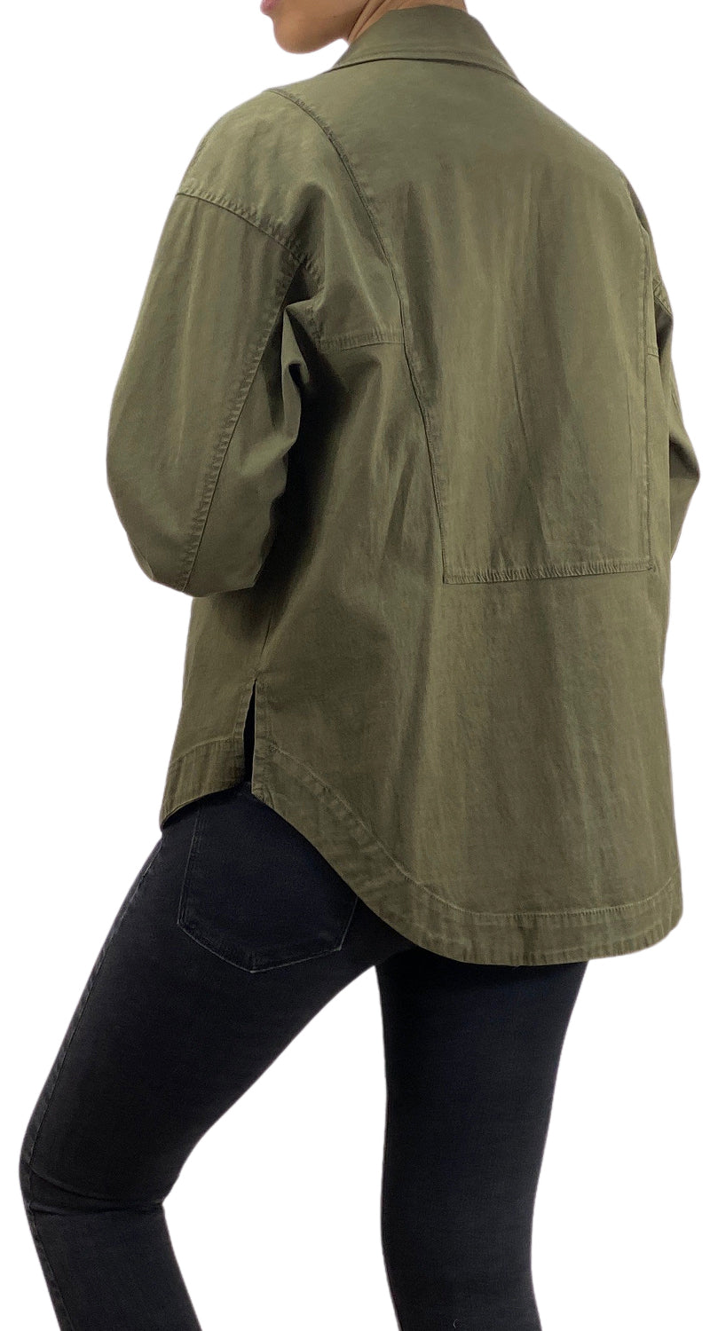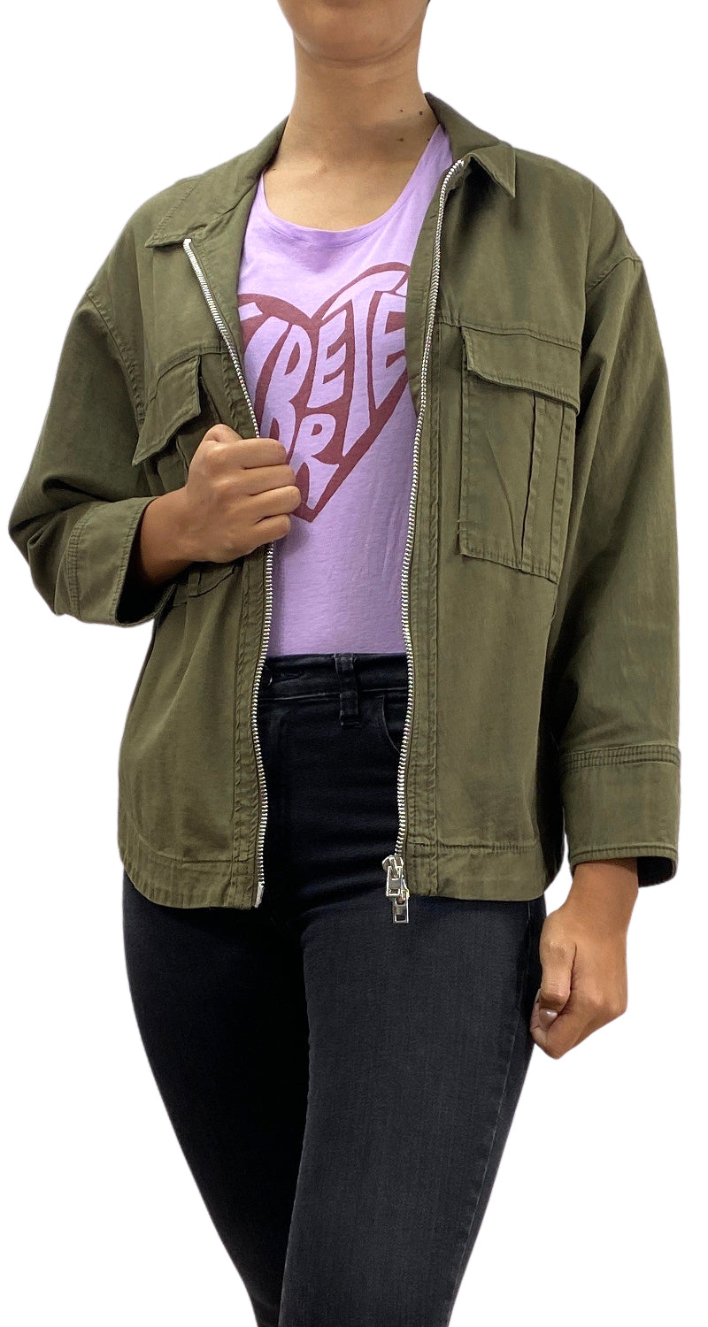 Chaqueta ligera color Verde con bolsillos sobrepuestos frontales.