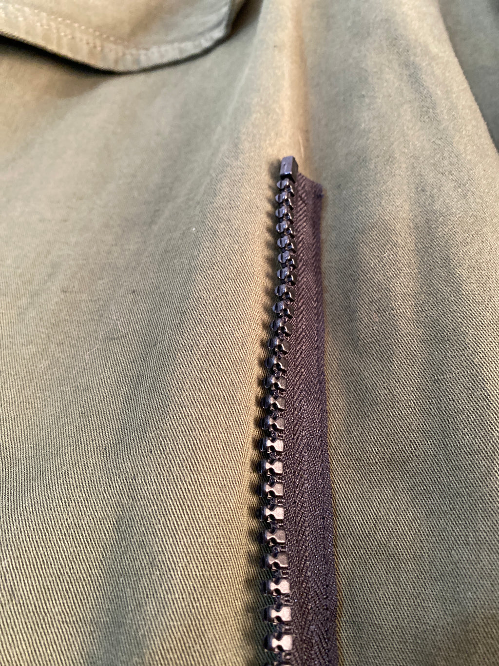 Chaqueta color Verde con cierre Negro y bolsillos frontales.