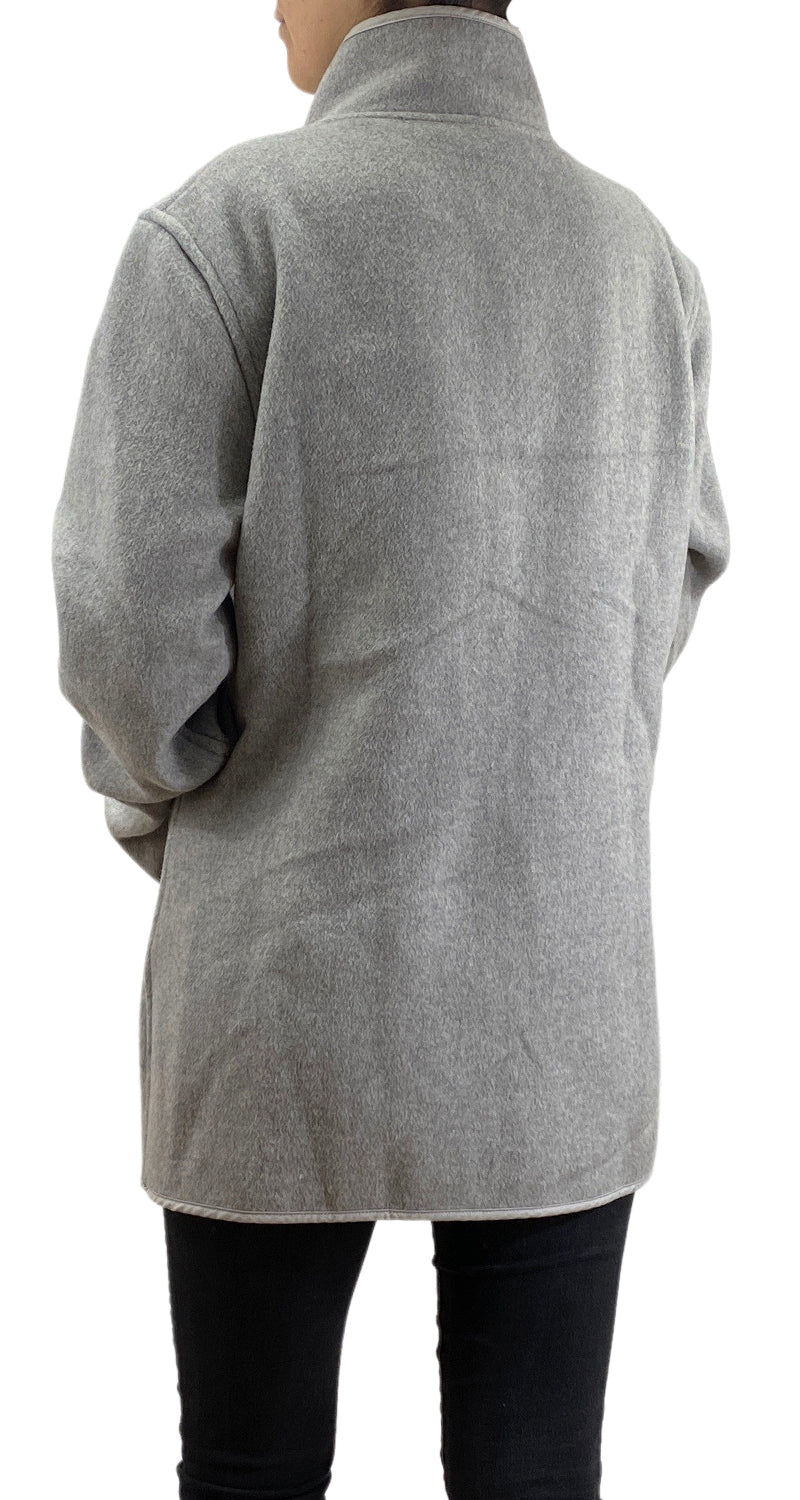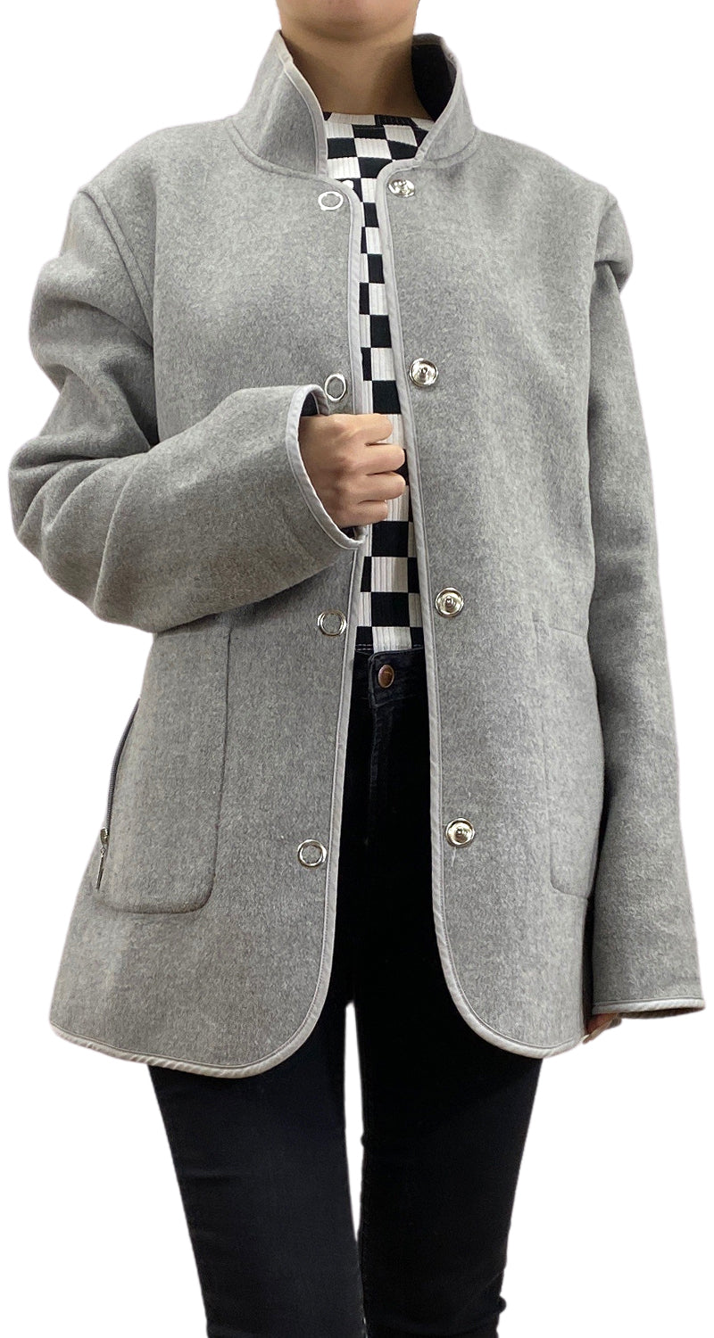 Chaqueta en color Gris, bolsillos con cierre en delantero, cierra con broches a presión.
