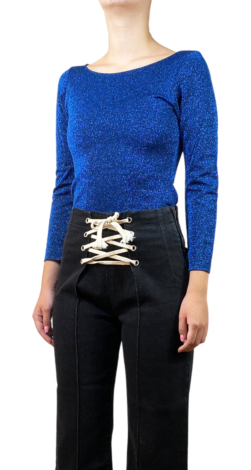 Polera color Azul cuello redondo con detalle de fibras metalizadas.