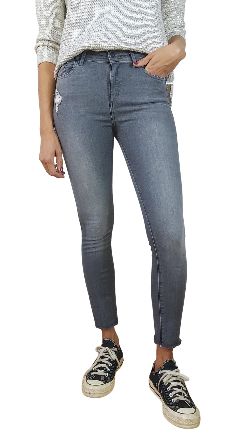 Jeans Gris con efecto deslavado, estilo 5 bolsillos. Talla 38/22 de la marca. La talla 22 equivale a la talla 34.