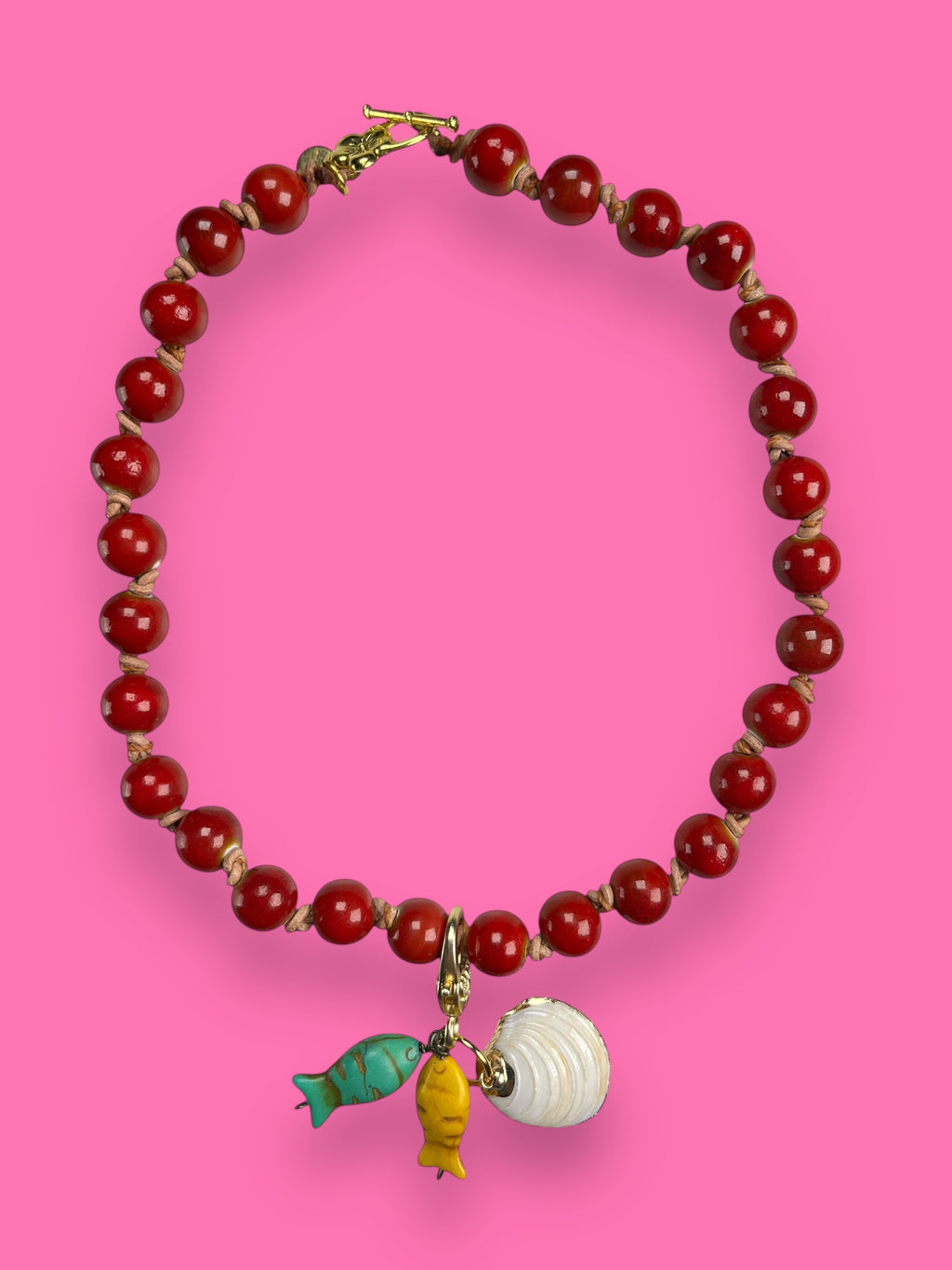 Collar cuentas de cerámica hechas a mano, hiladas con hilo y cuero Cuentas de 10 mm app Sin colgante Largo collar 46 cm