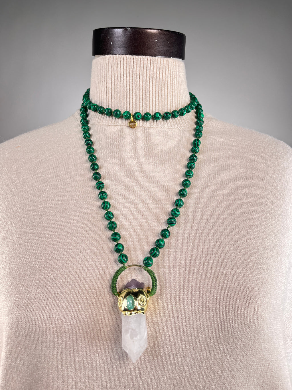 Collar Cuarzo Tornasol Piedra Malaquita II