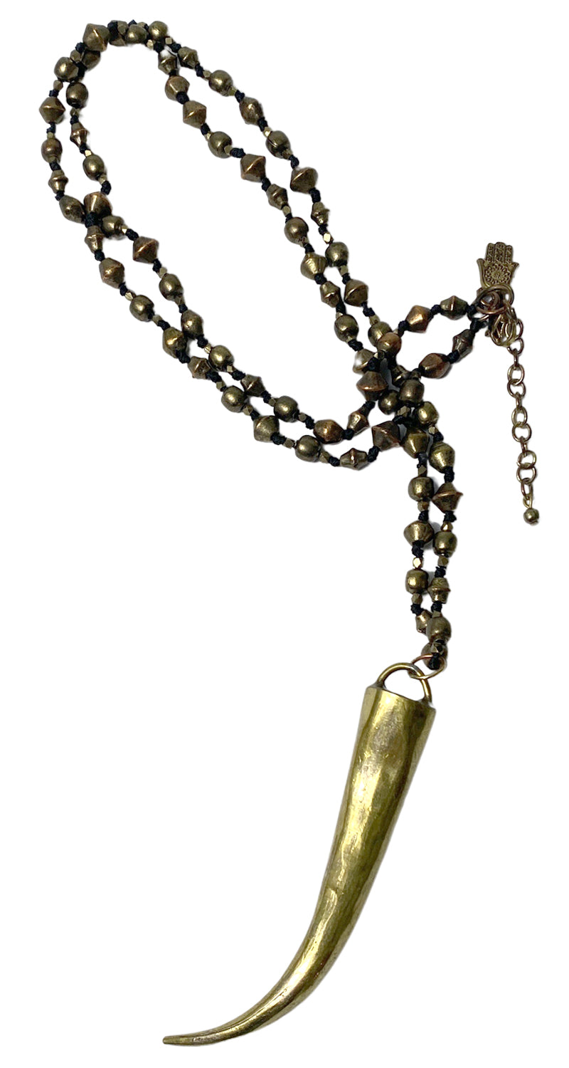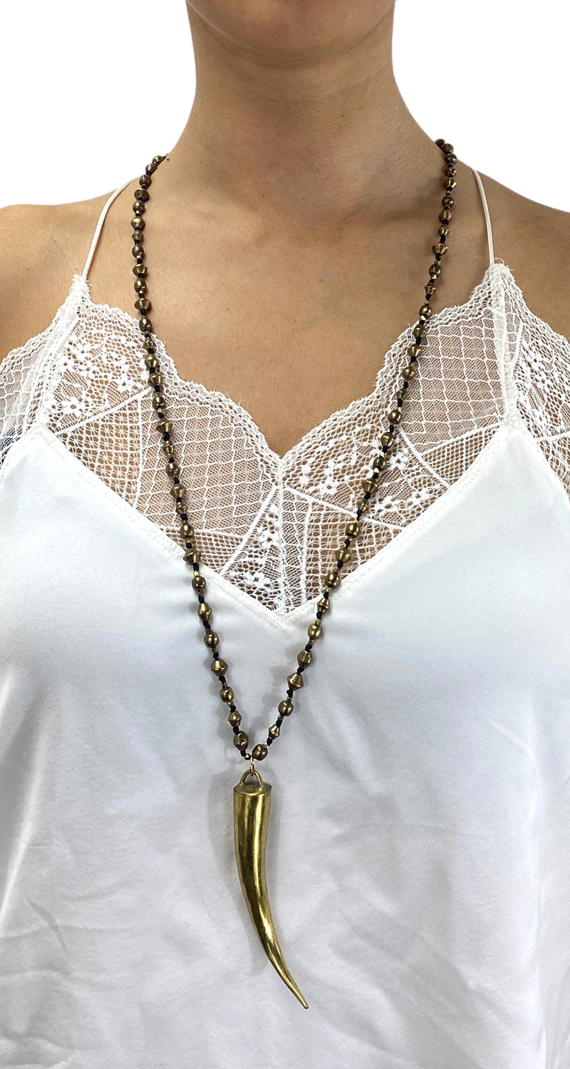 Collar de hilo Negro con piedras en Dorado y dije de cuerno Dorado.