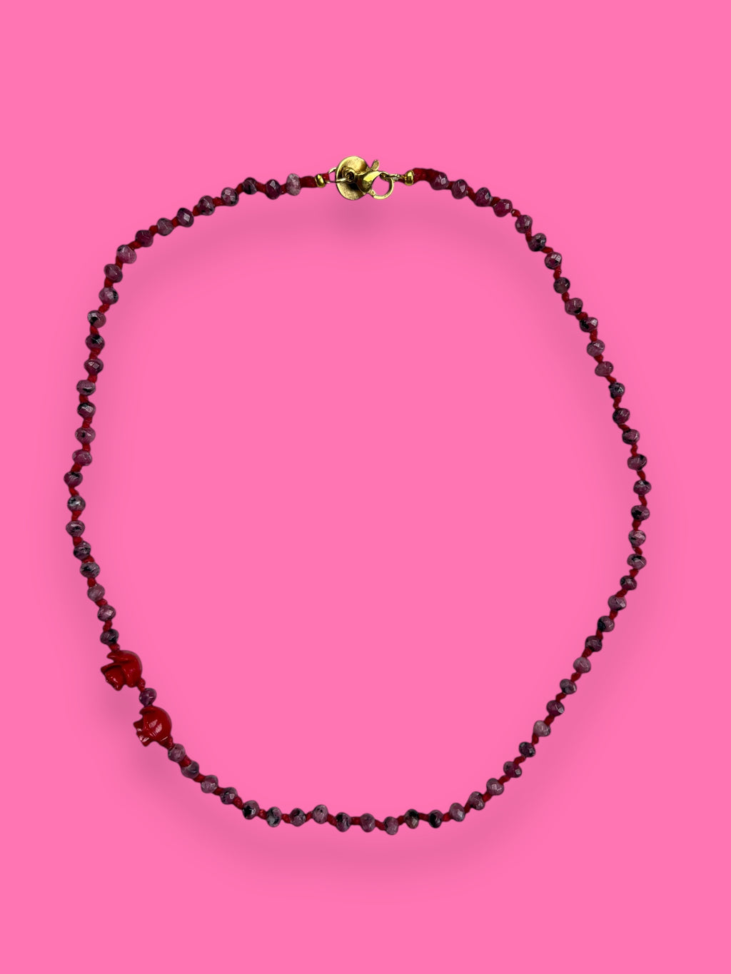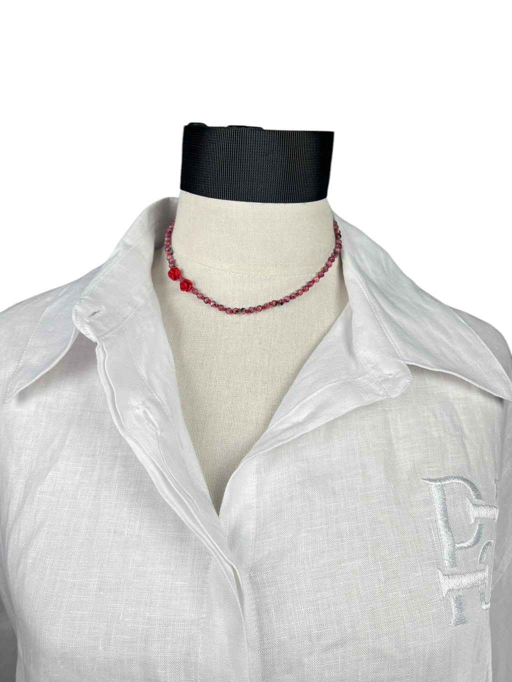 collar de piedras naturales , ágata tomate color rojo de 4 mm , mas dos rositas de resina reconstituida.