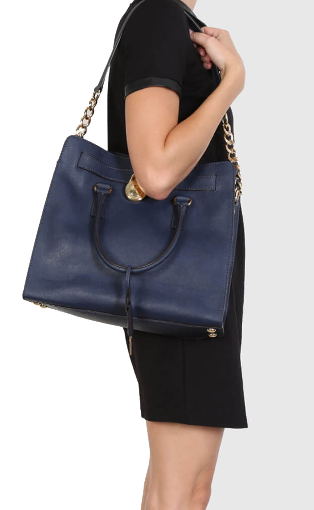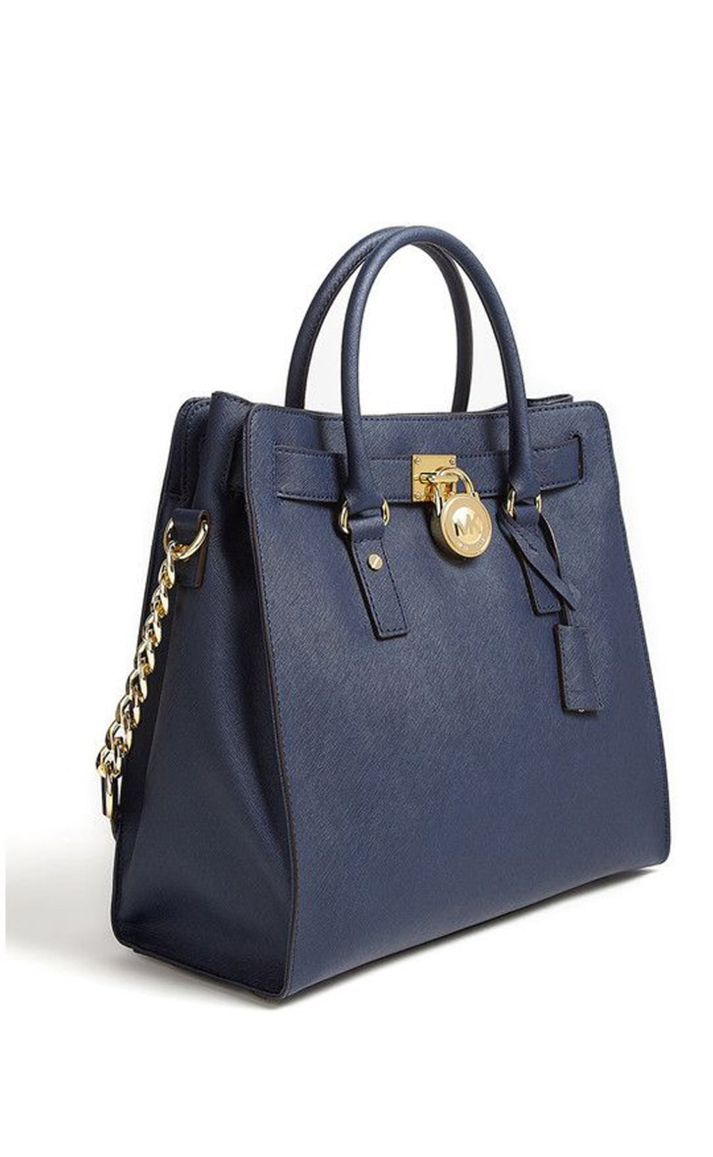 Cartera color Azul Rey con candado Dorado. Tiene asa y correa para usarla cruzada.Viene con la bolsa de género.