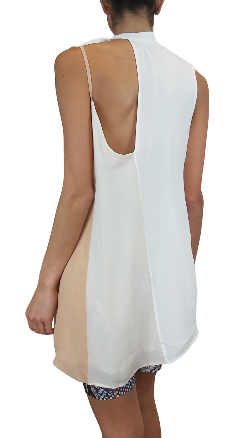 Top bicolor en tonos Beige y Blanco. Con lazo ajustable en cuello y escote asimétrico. Talla 3 de la marca.