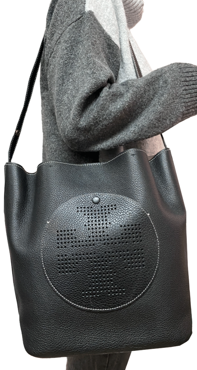 Cartera estilo Tote color Negro con pequeño bolsillo interno y broche de imán.