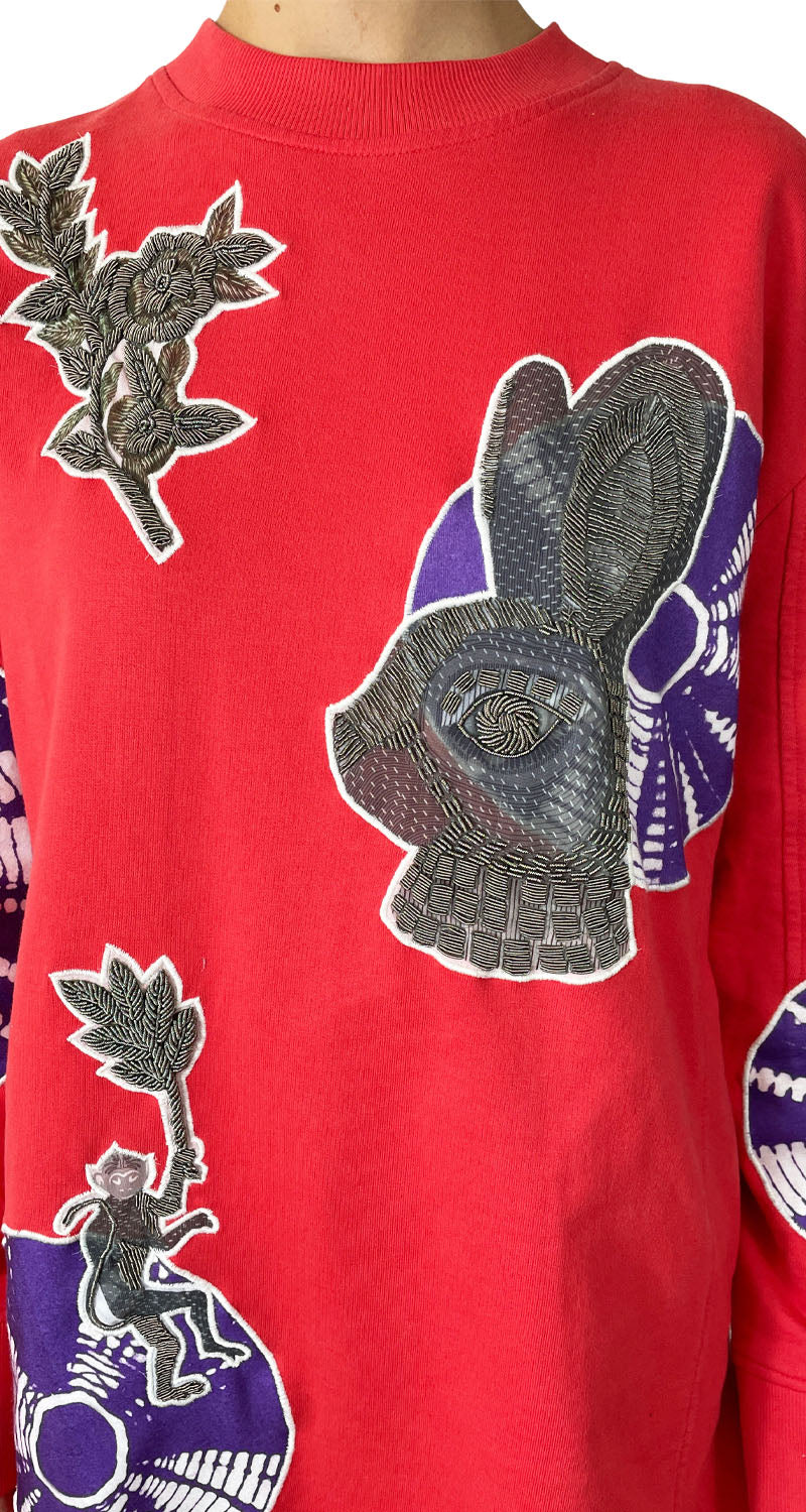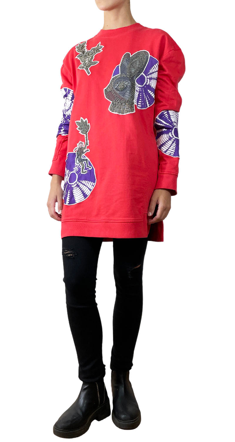 Polerón cerrado con parches estilo Tie Dye con diseño de animales y con aberutras laterales.