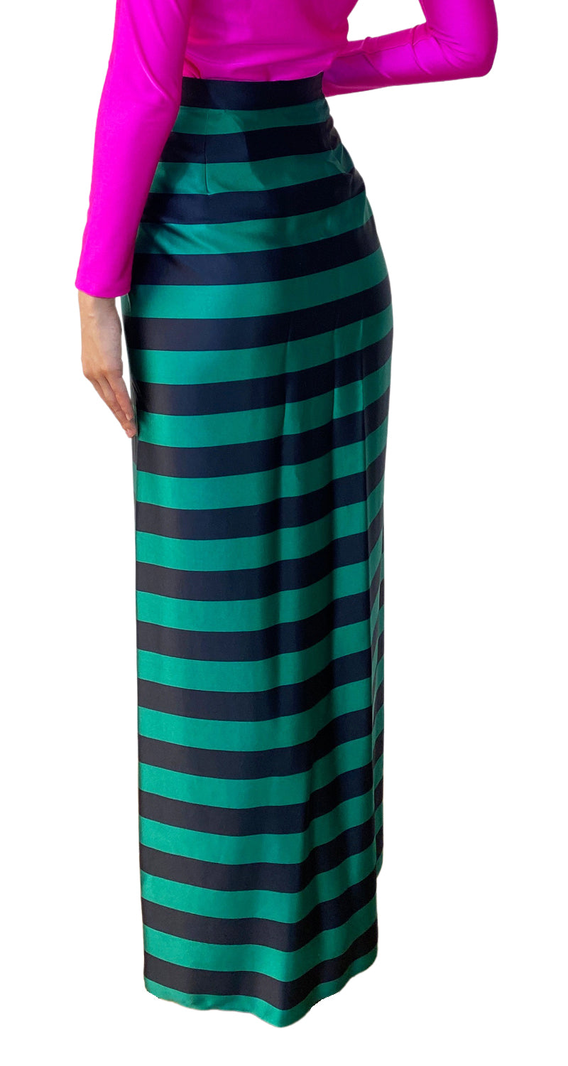 Falda con listas horizontales Verde y Azul con abertura en parte delantera izquierda.