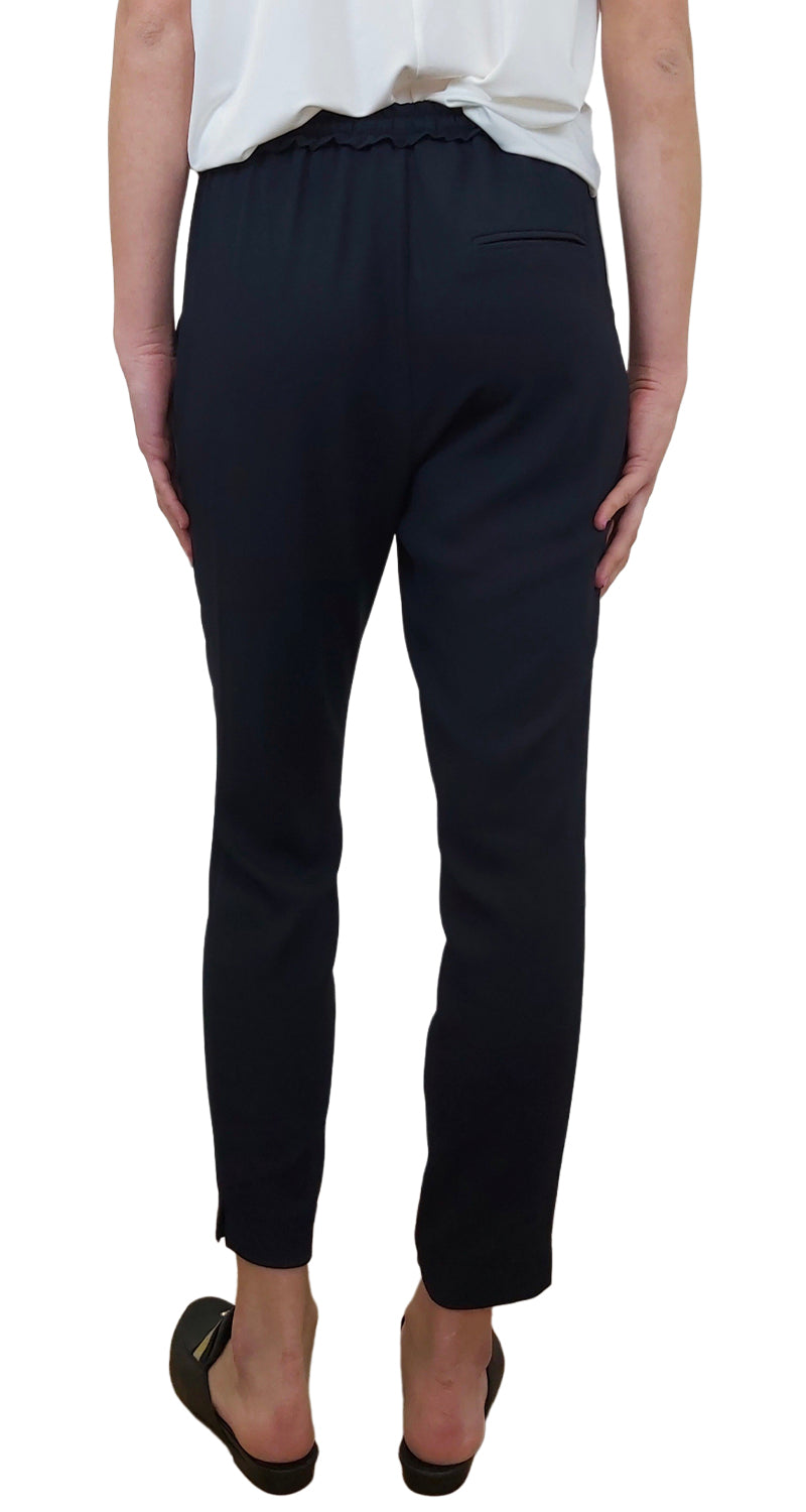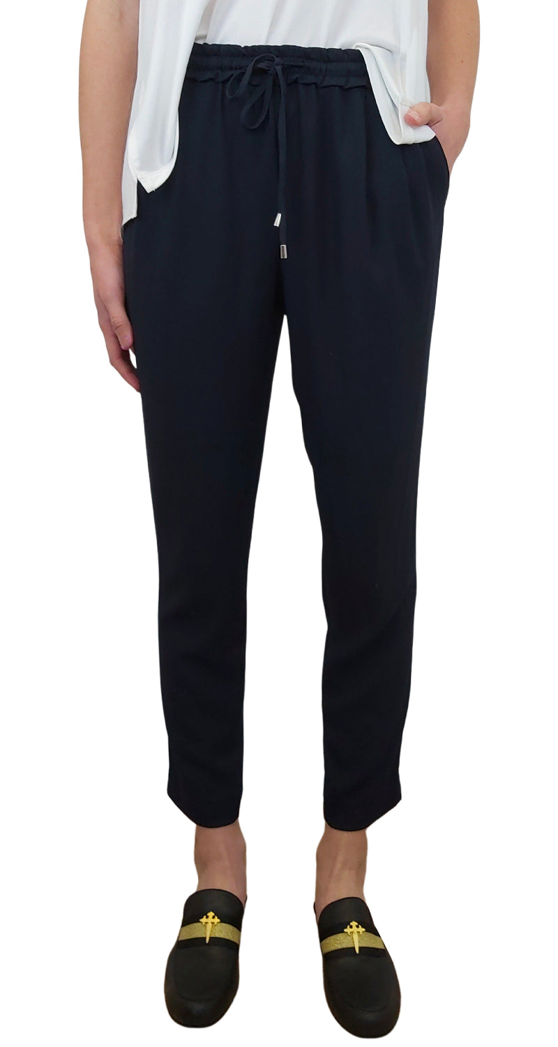 Pantalón de tela color Navy, holgado con bolsillos en costados y pretina elásticada.