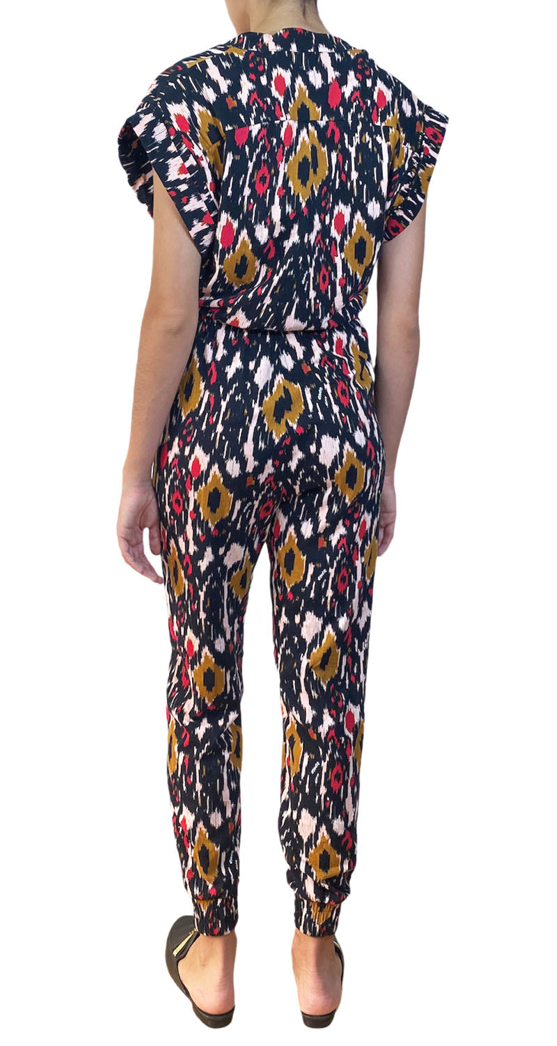Altura modelo 1,68. Enterito Multicolor Animal Print seis botones en delantero y cuerda en cintura. Talla 1 de la marca